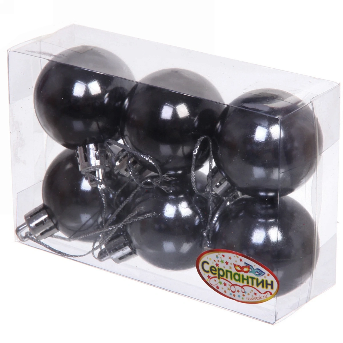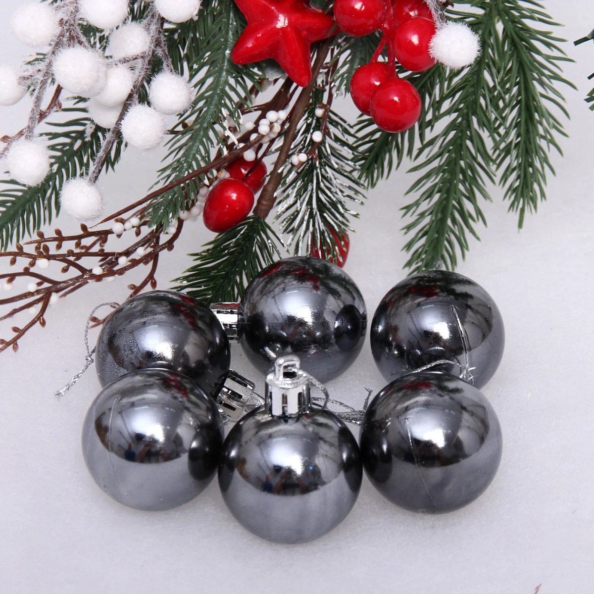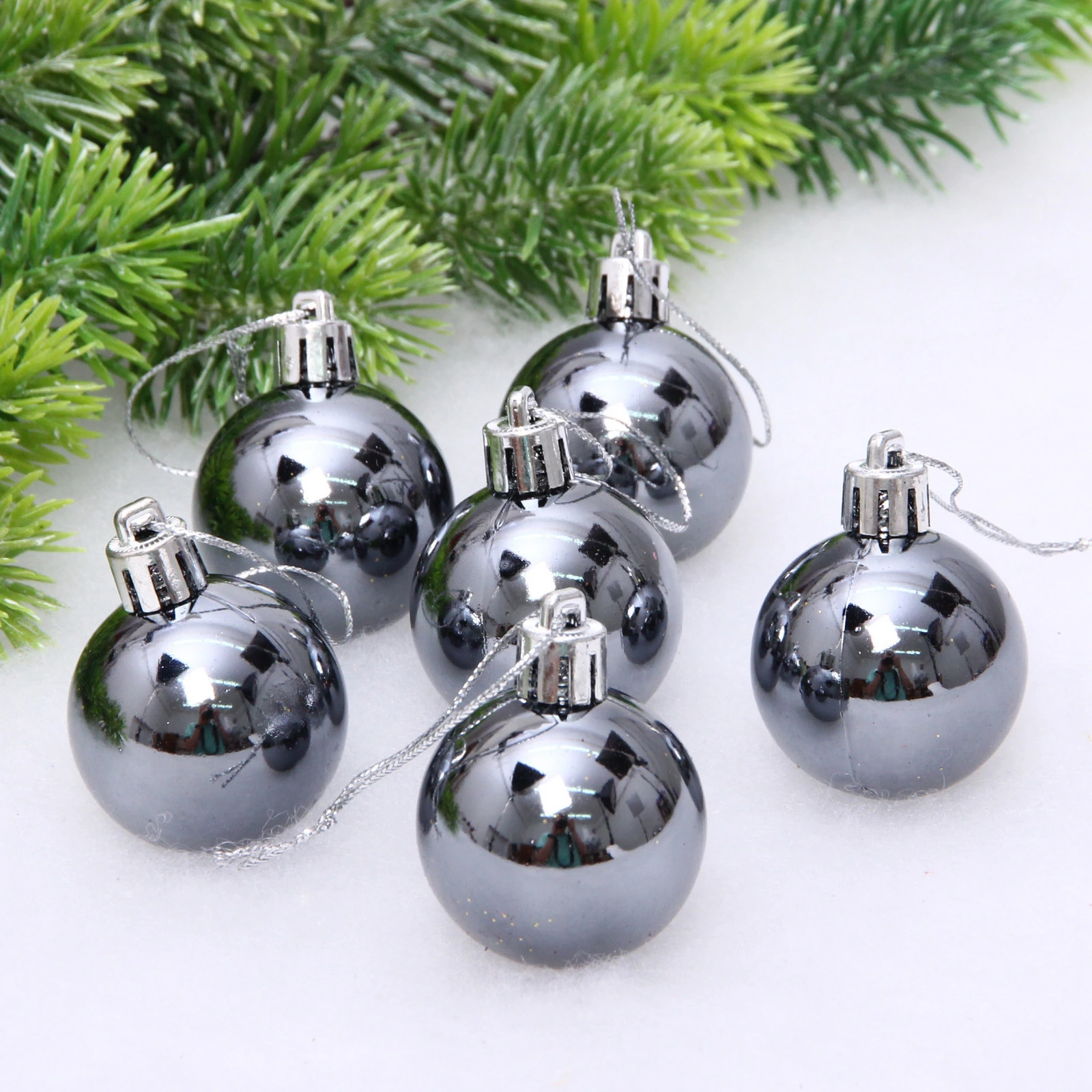 Новогодние шары 4 см (набор 6 шт) "Глянец", графит