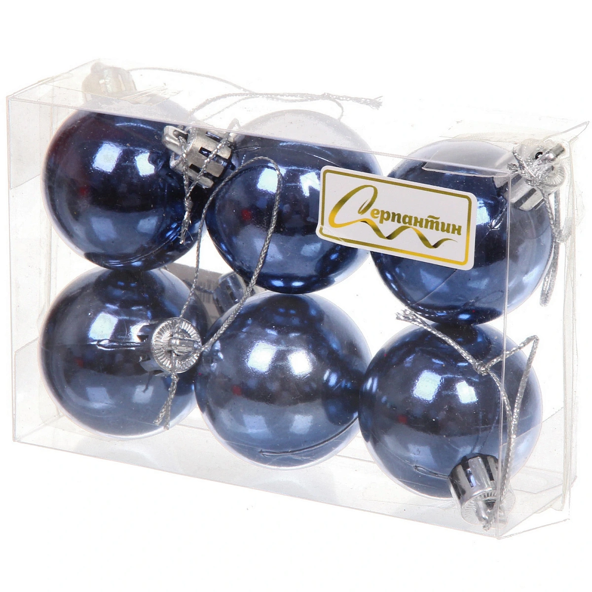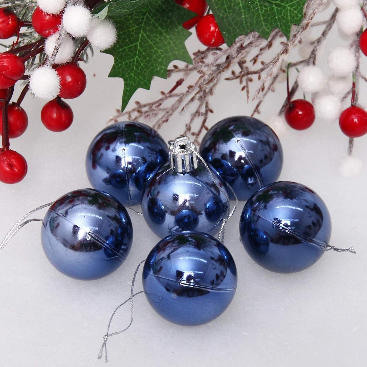 Новогодние шары 4 см (набор 6 шт) "Глянец", сапфир