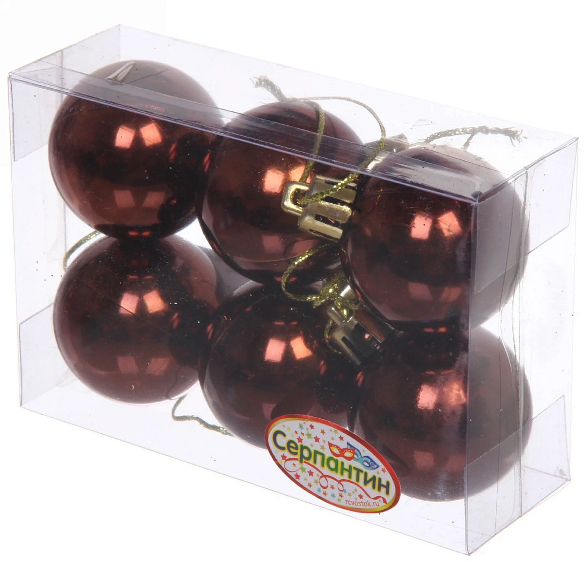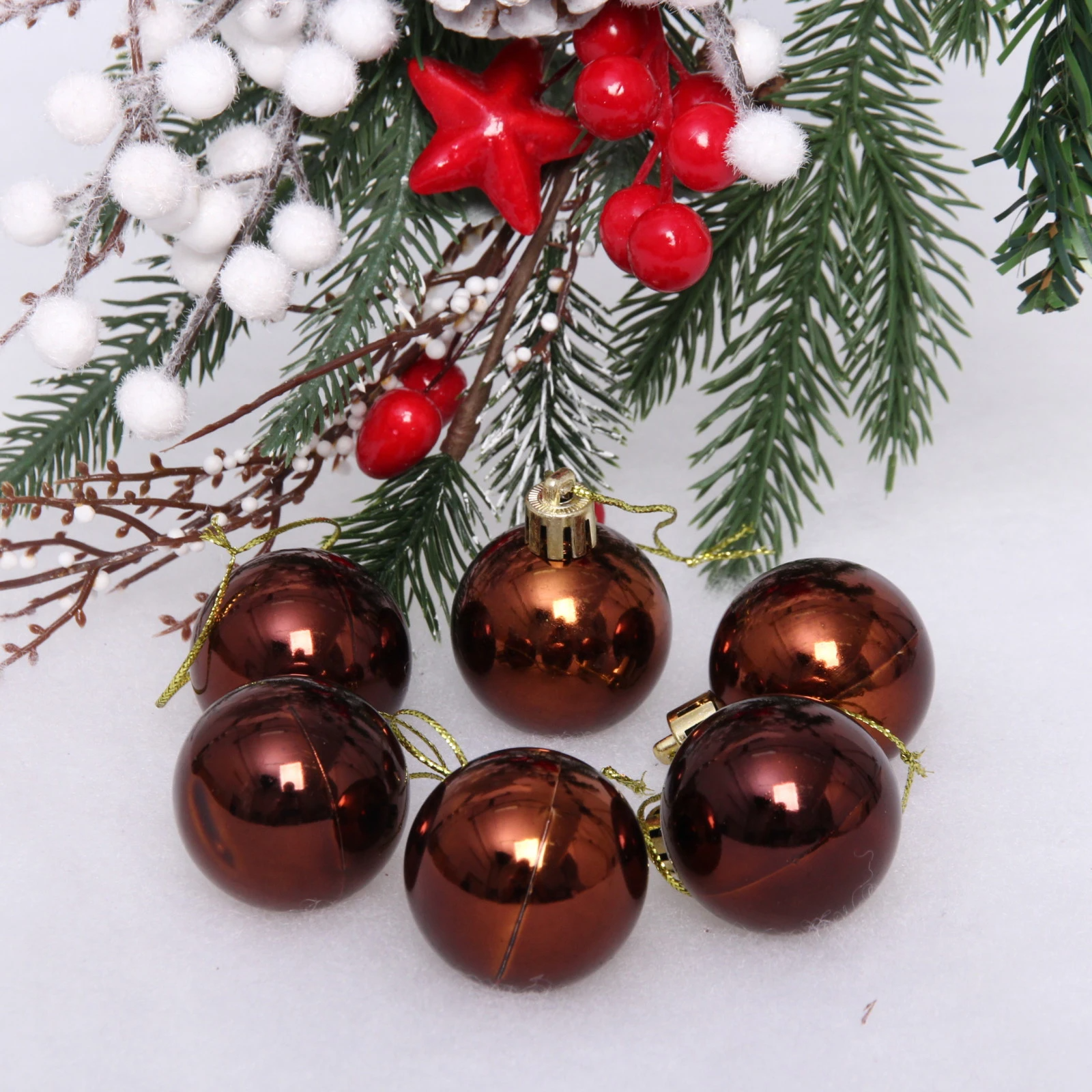 Новогодние шары 4 см (набор 6 шт) "Глянец", шоколад