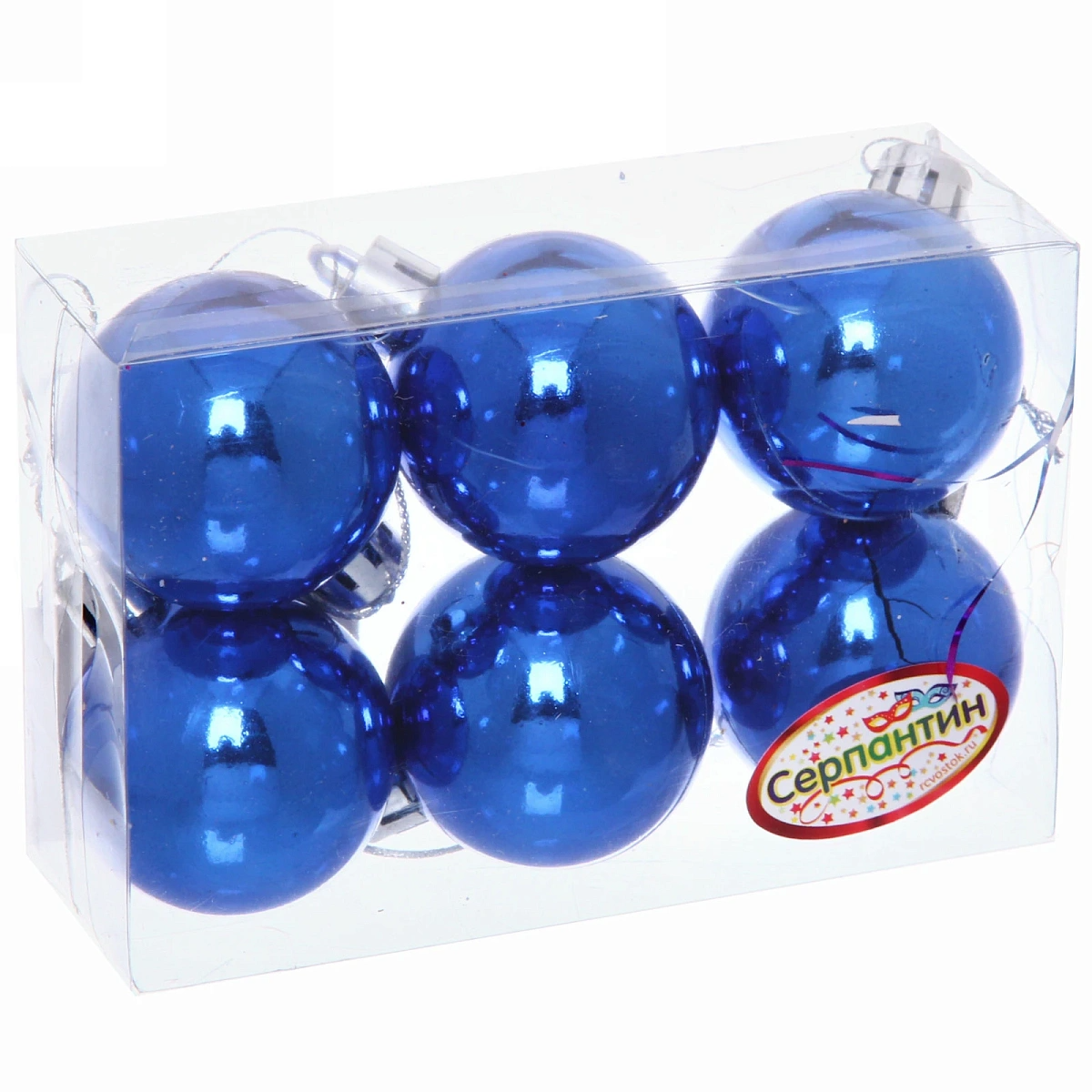 Новогодние шары 4 см (набор 6 шт) "Глянец", синий