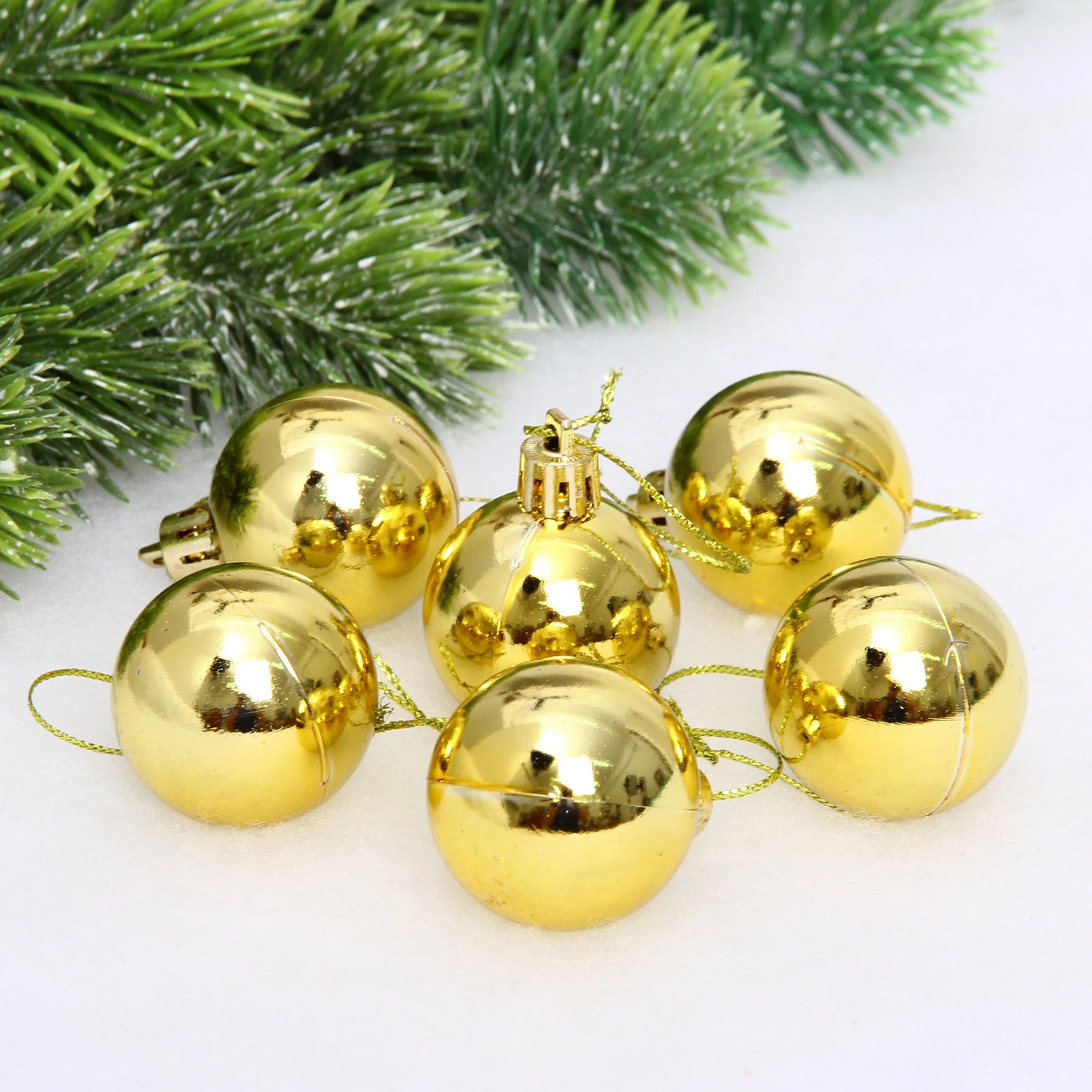 Новогодние шары 4 см (набор 6 шт) "Глянец", золотой