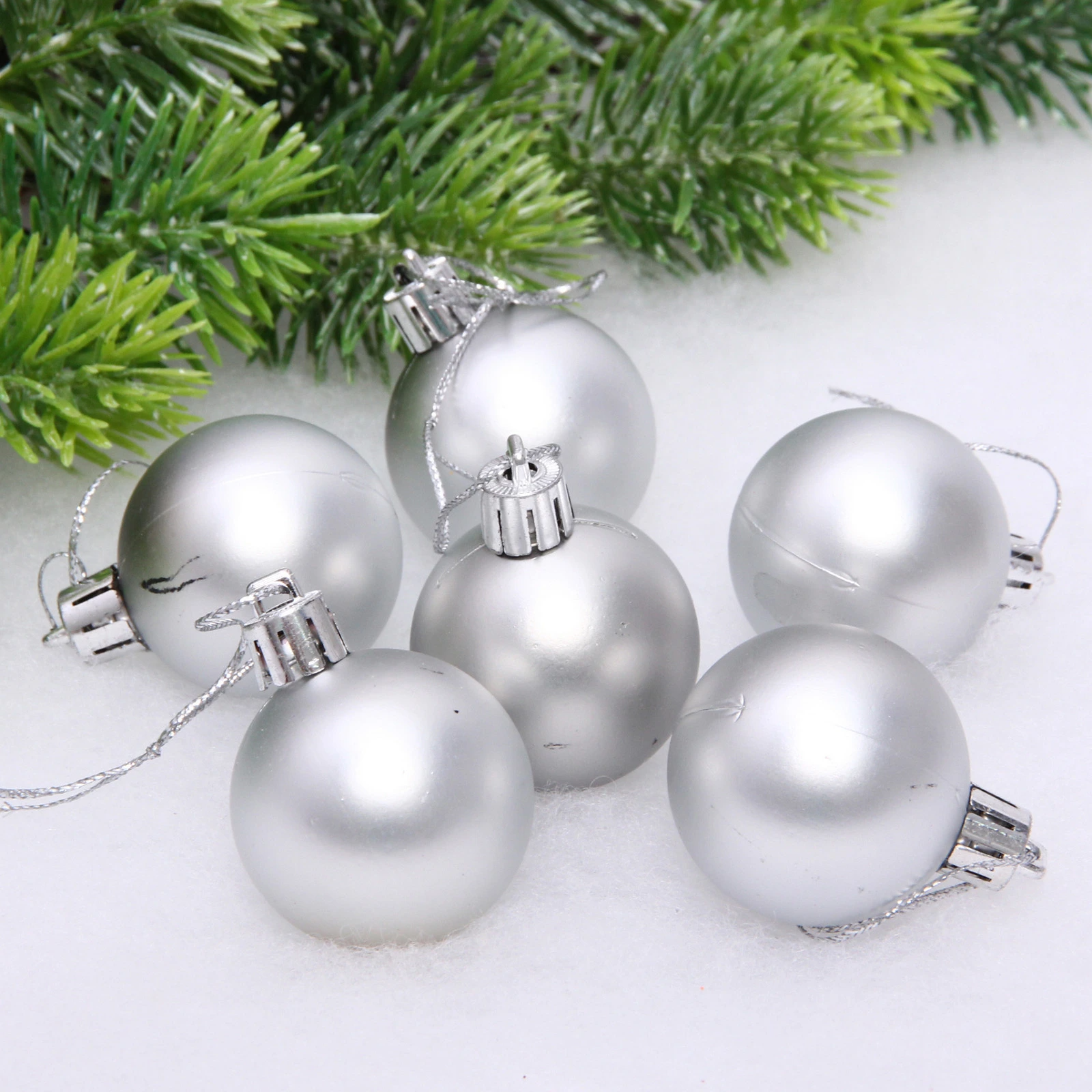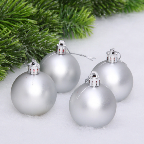 Новогодние шары 4 см (набор 6 шт) "Матовый", серебро