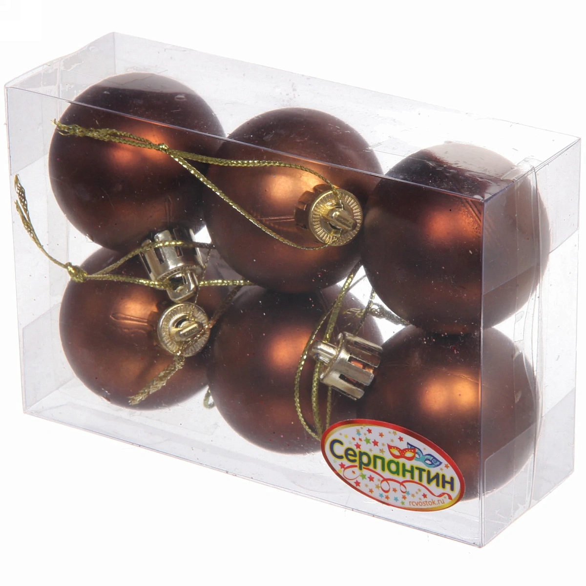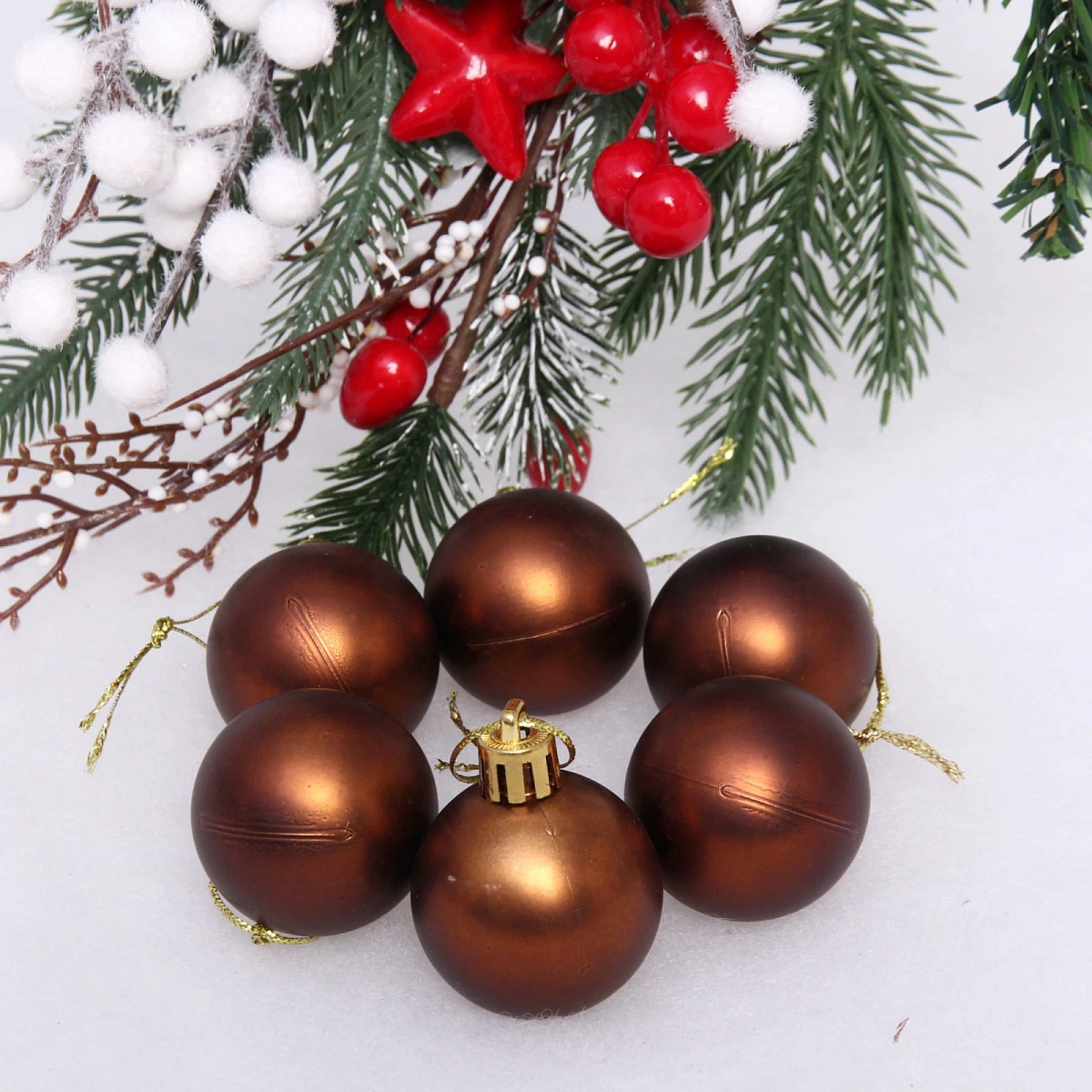 Новогодние шары 4 см (набор 6 шт) "Матовый", шоколад