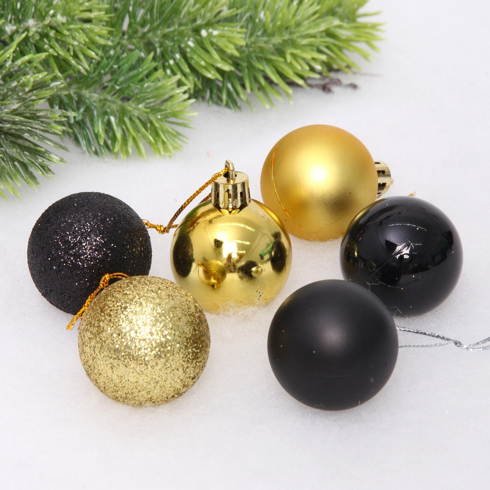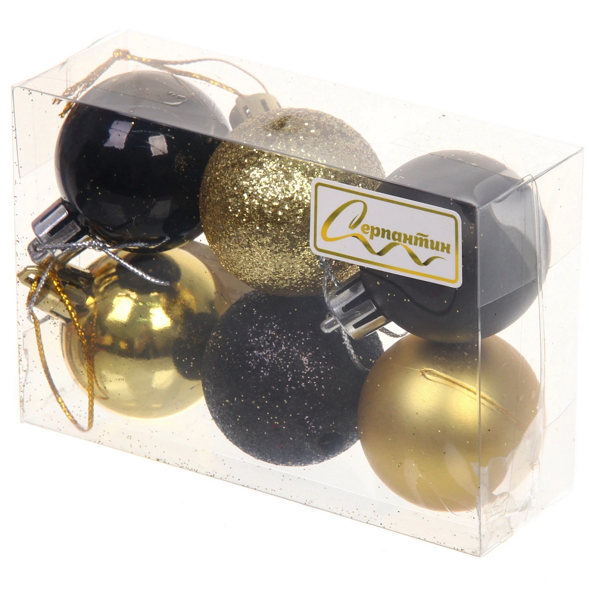Новогодние шары 4 см (набор 6 шт) "Микс фактур", черный/золото