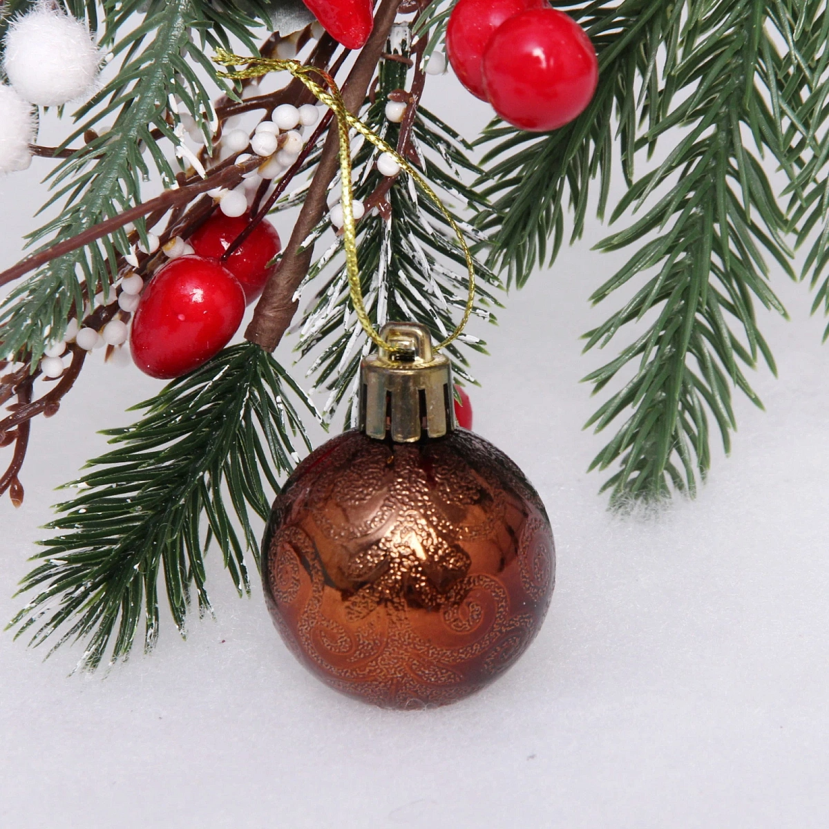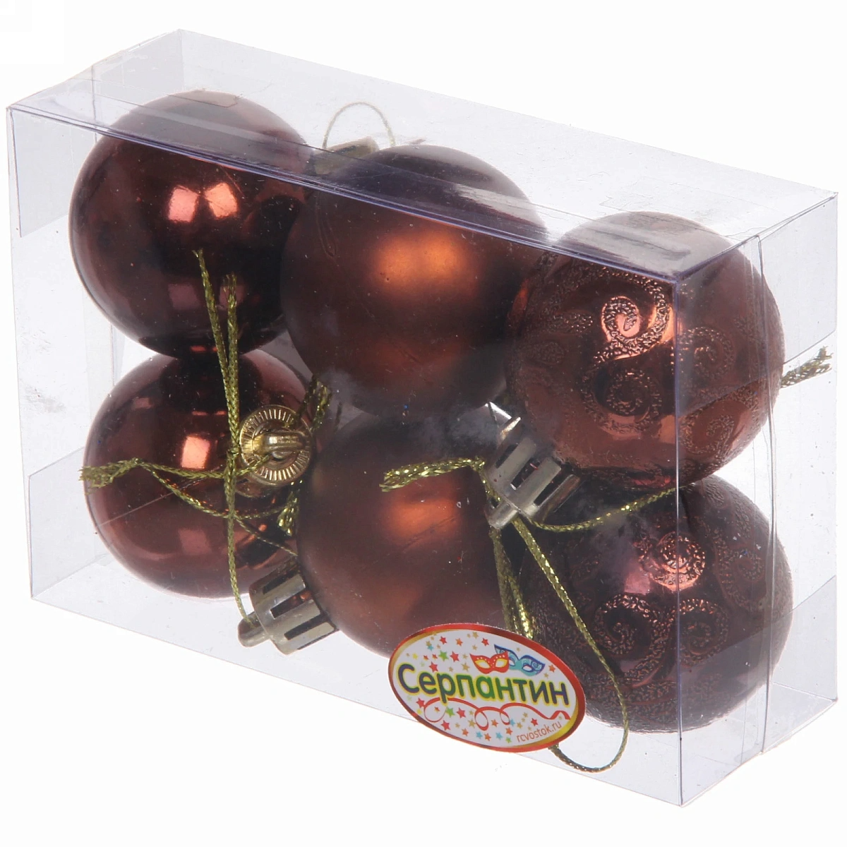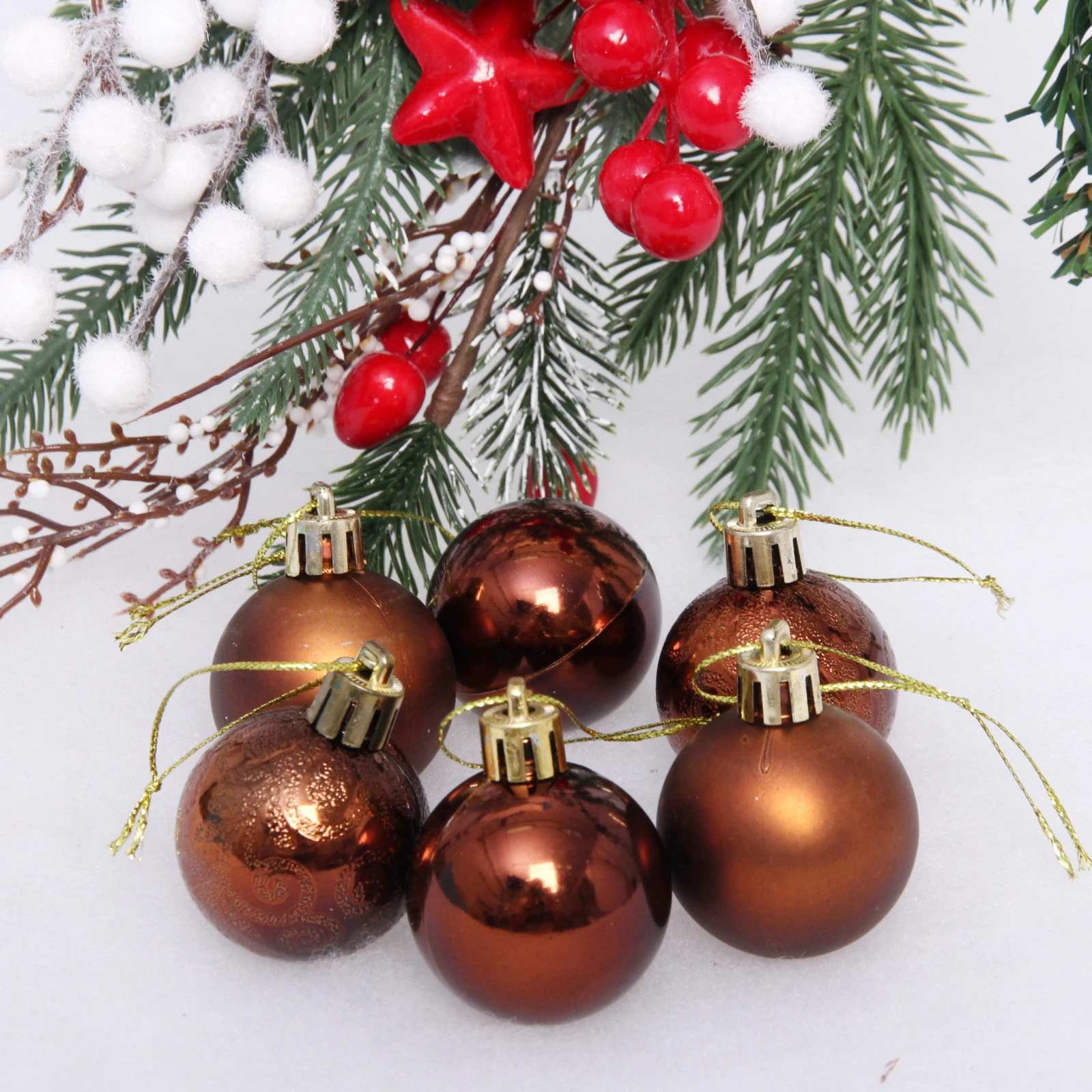 Новогодние шары 4 см (набор 6 шт) "Микс фактур", шоколад