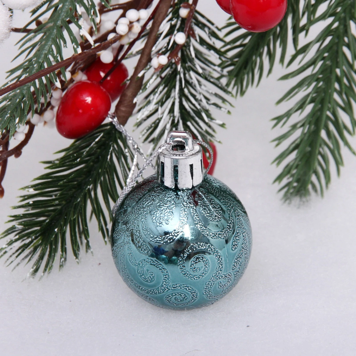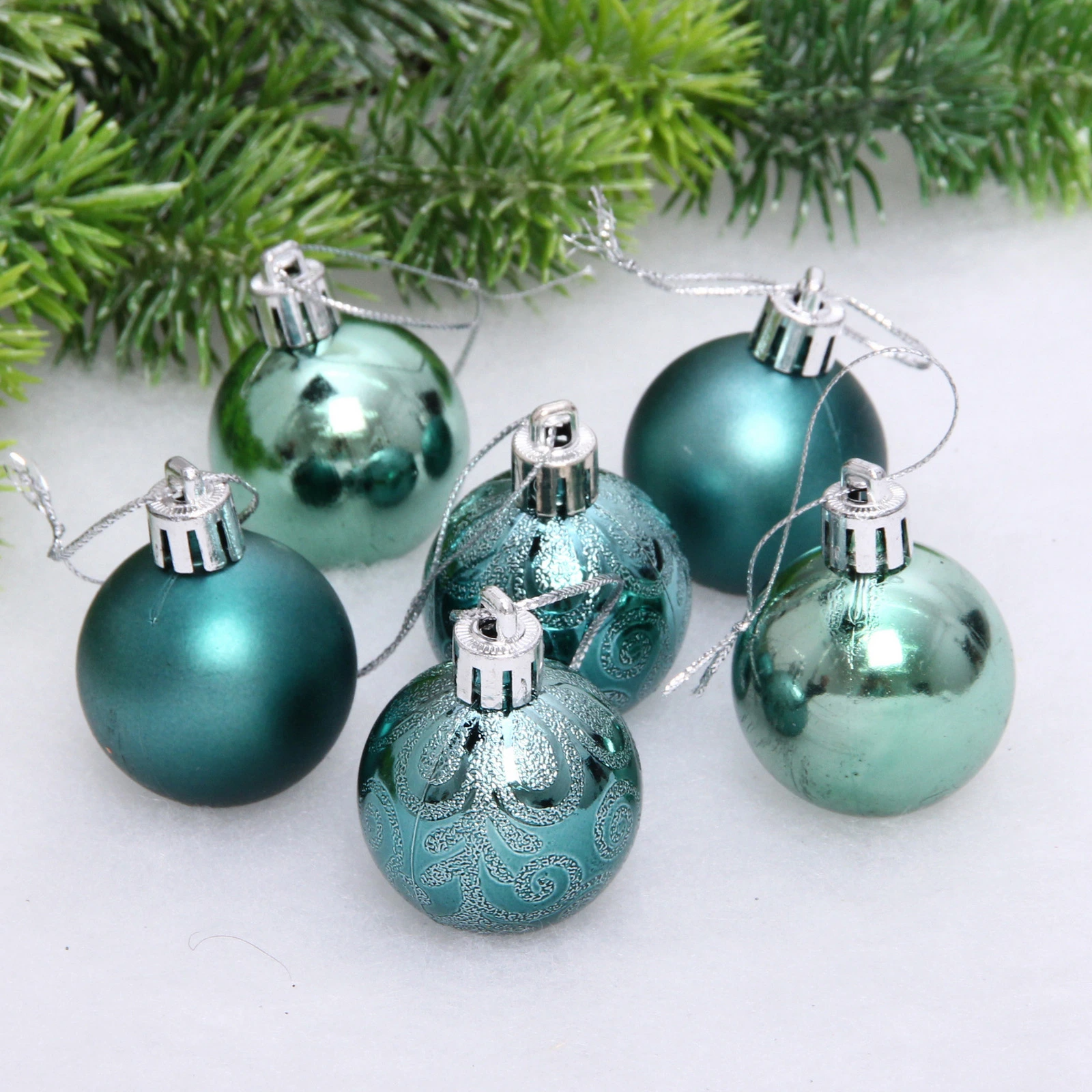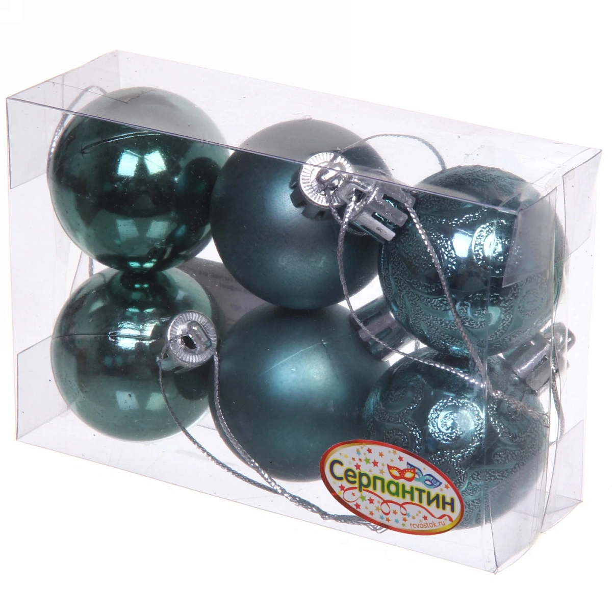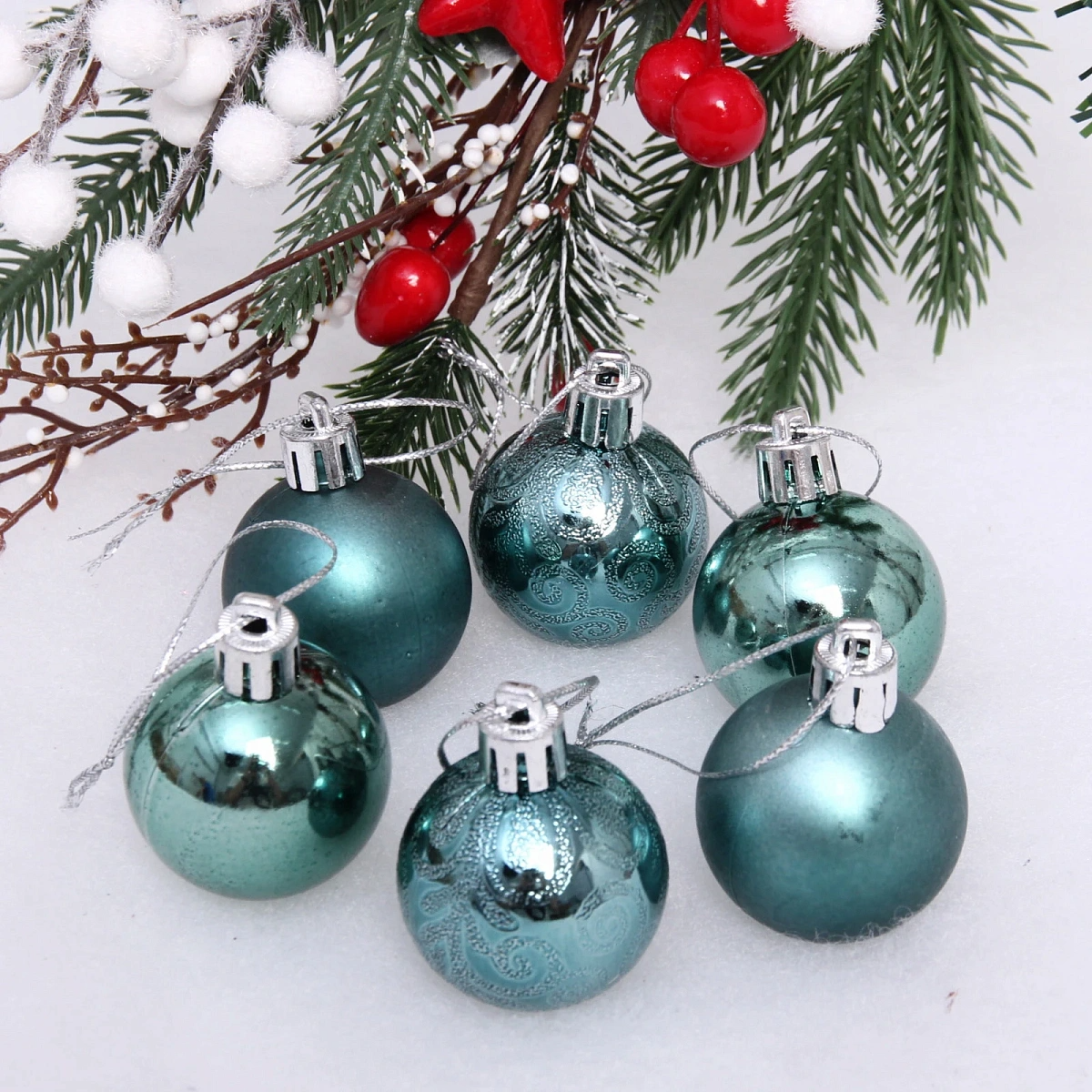 Новогодние шары 4 см (набор 6 шт) "Микс фактур", темный нефрит