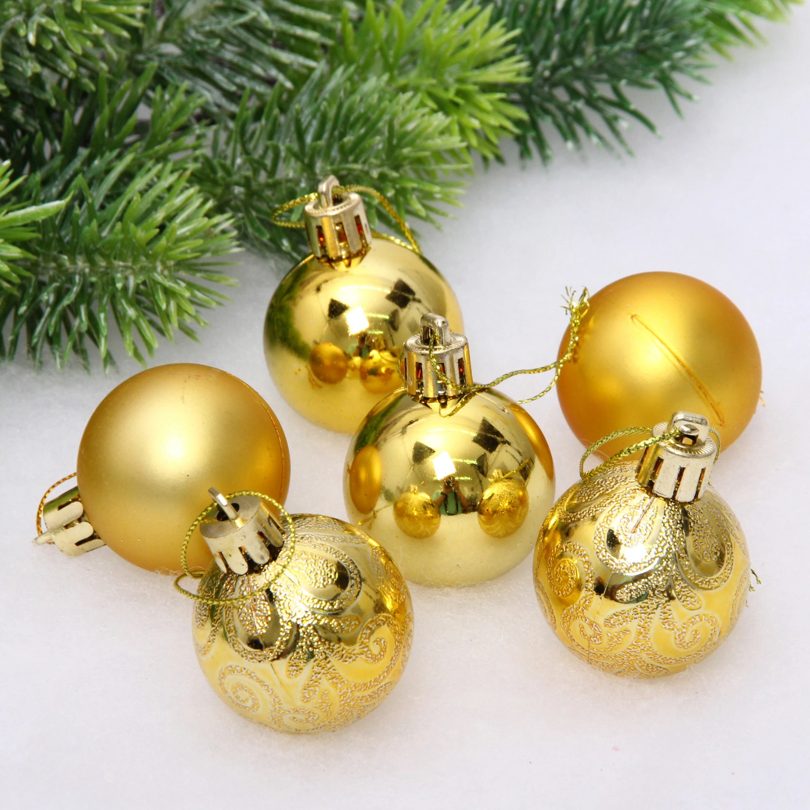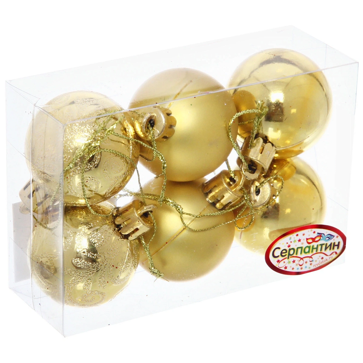 Новогодние шары 4 см (набор 6 шт) "Микс фактур", золотой