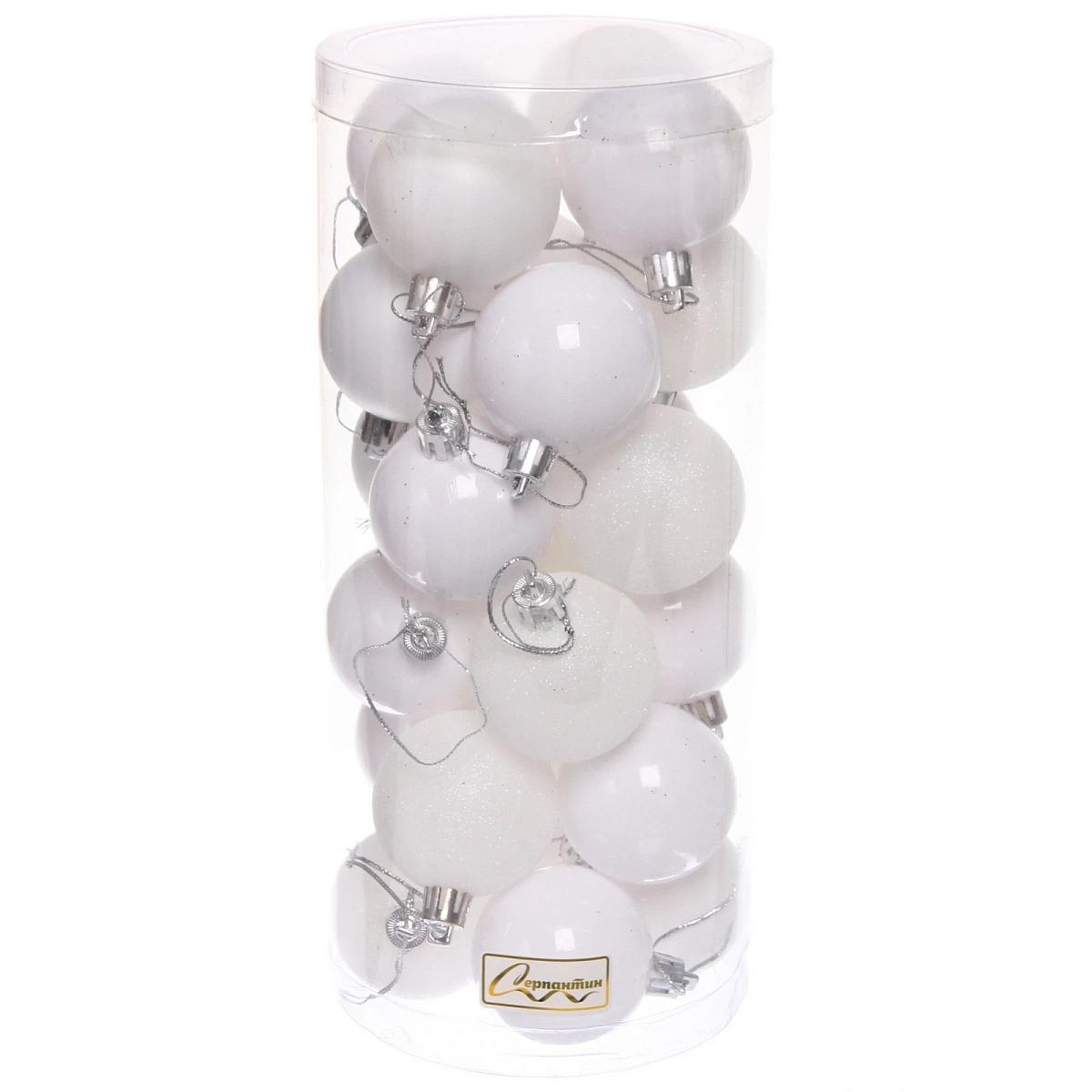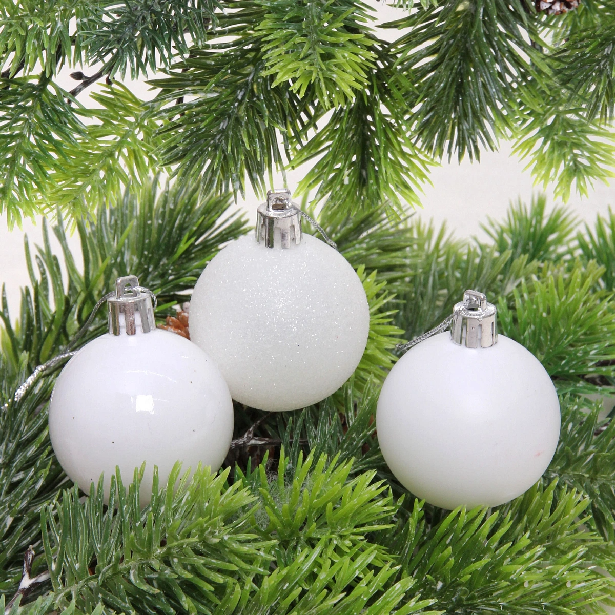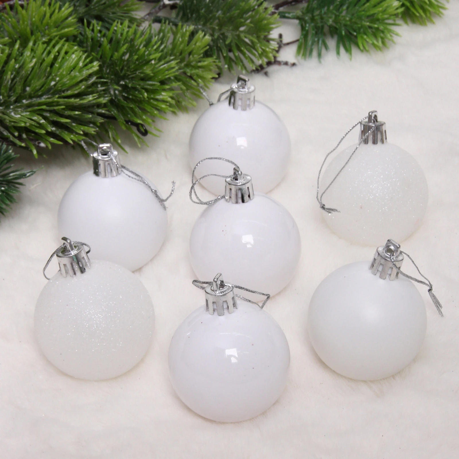 Новогодние шары 5 см (набор 24 шт) "Микс фактур", белоснежный