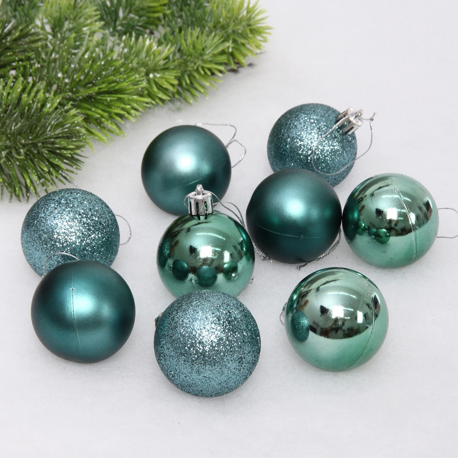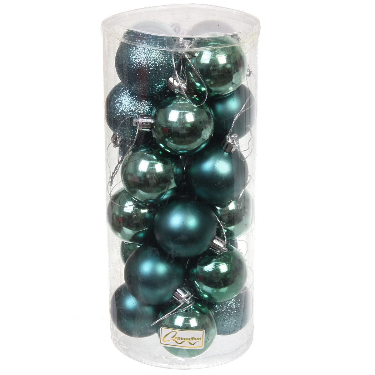 Новогодние шары 5 см (набор 24 шт) "Микс фактур", темный нефрит