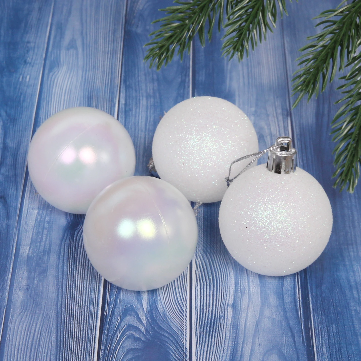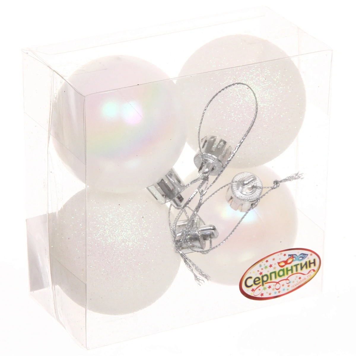 Новогодние шары 5 см (набор 4 шт) "Микс фактур", Белый/перламутр