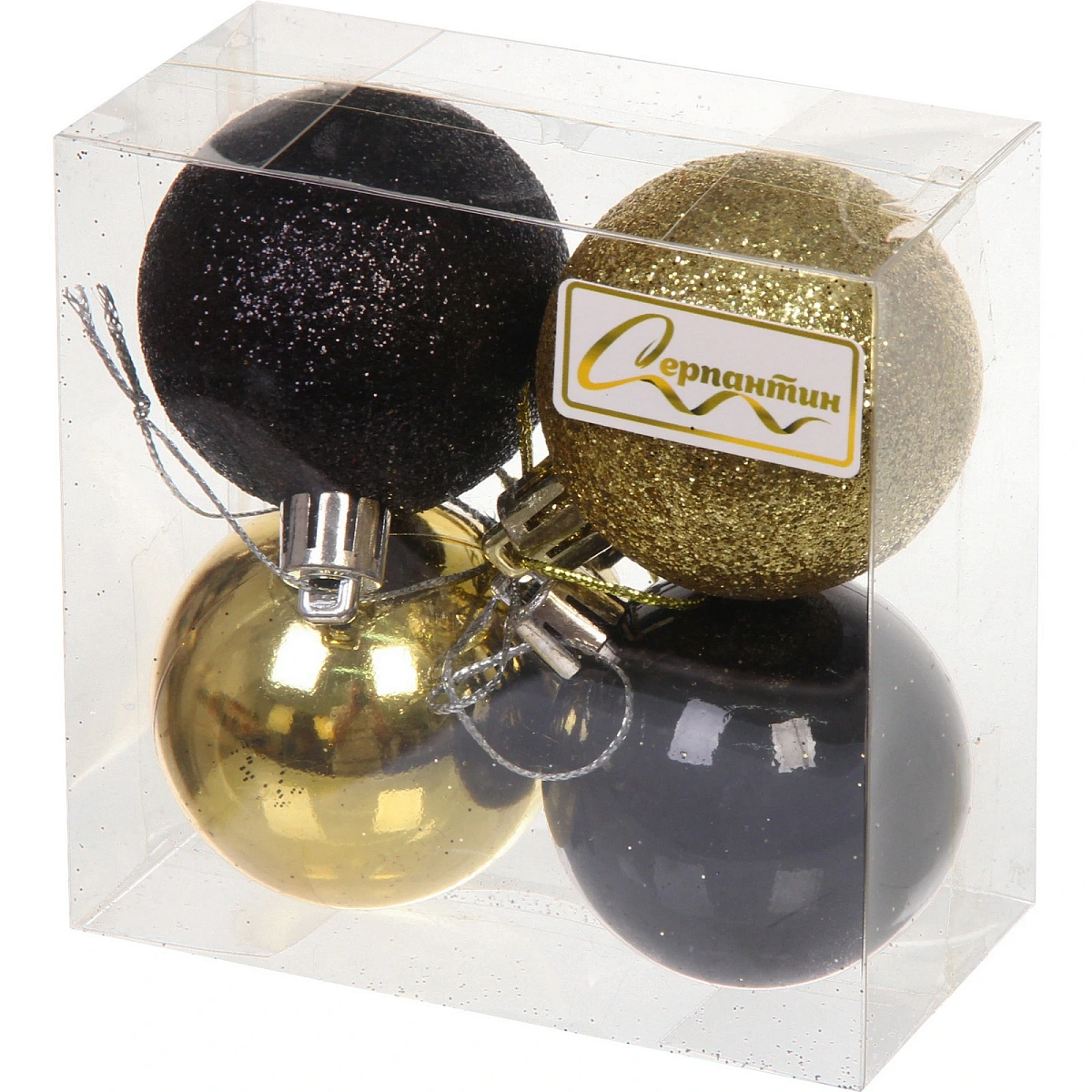 Новогодние шары 5 см (набор 4 шт) "Микс фактур", черный/золото