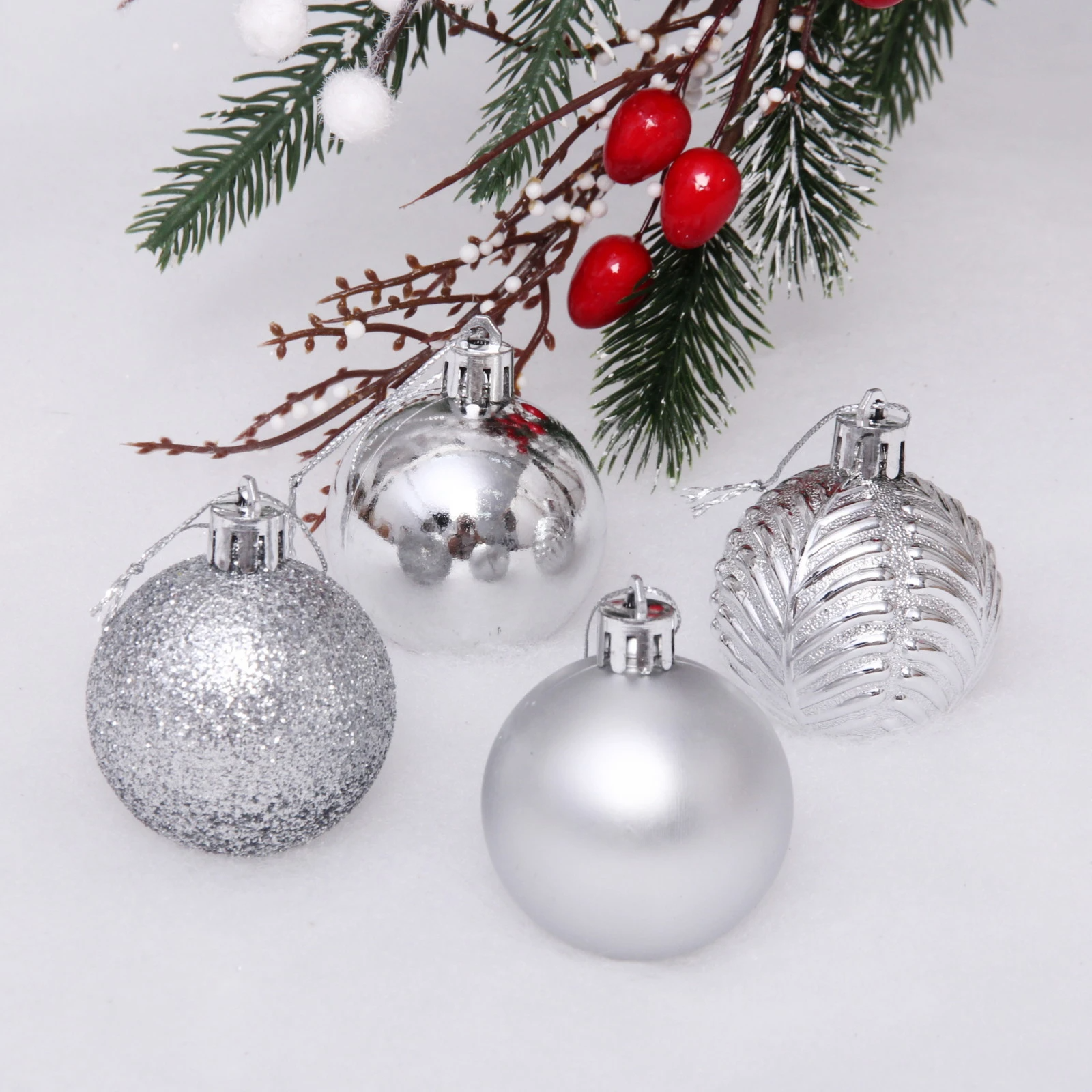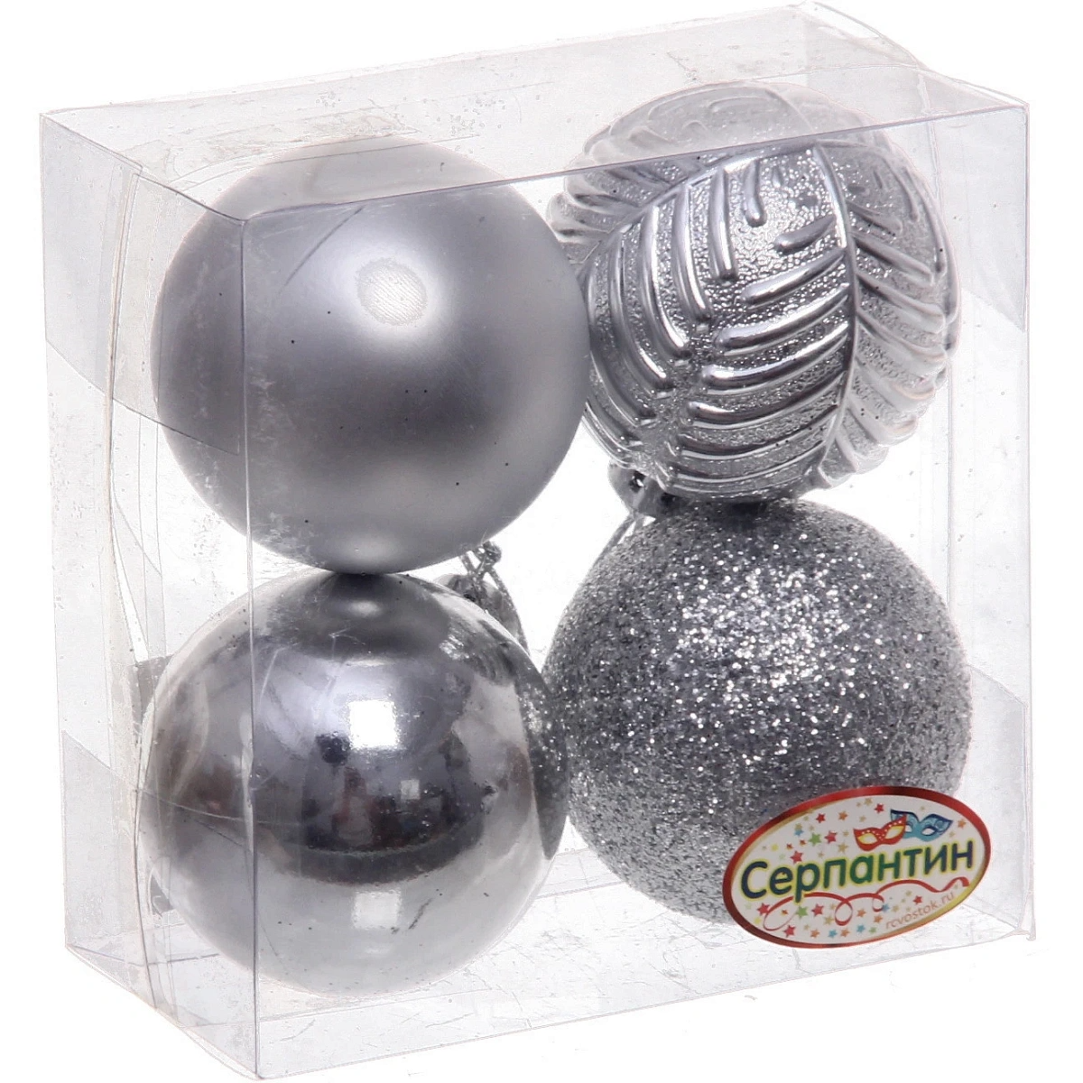 Новогодние шары 5 см (набор 4 шт) "Микс фактур", серебро