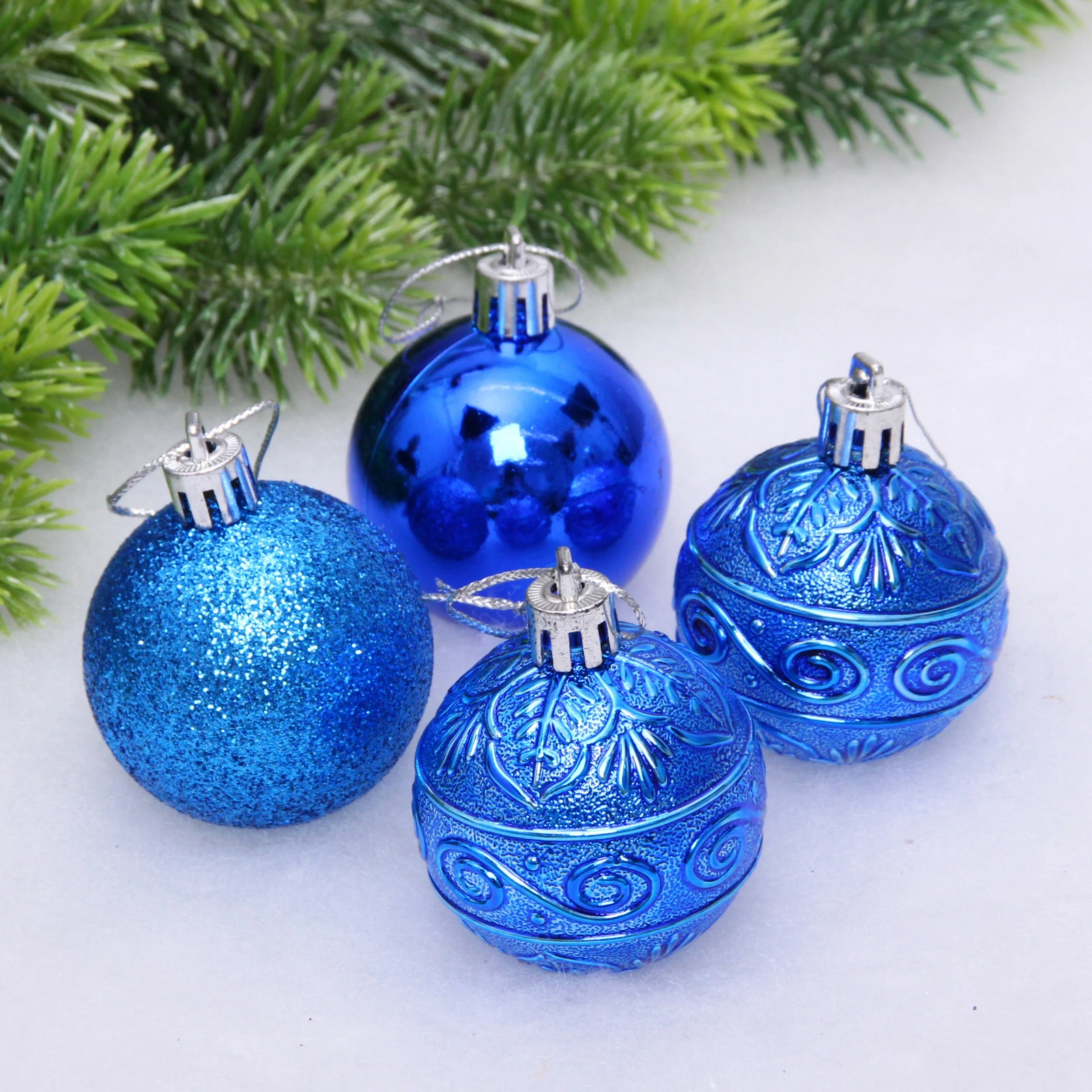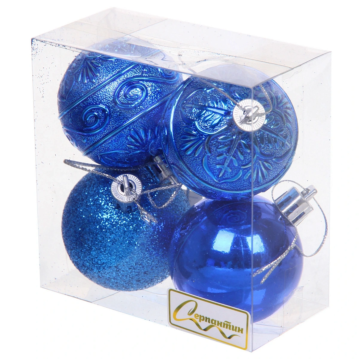 Новогодние шары 5 см (набор 4 шт) "Микс фактур", синий