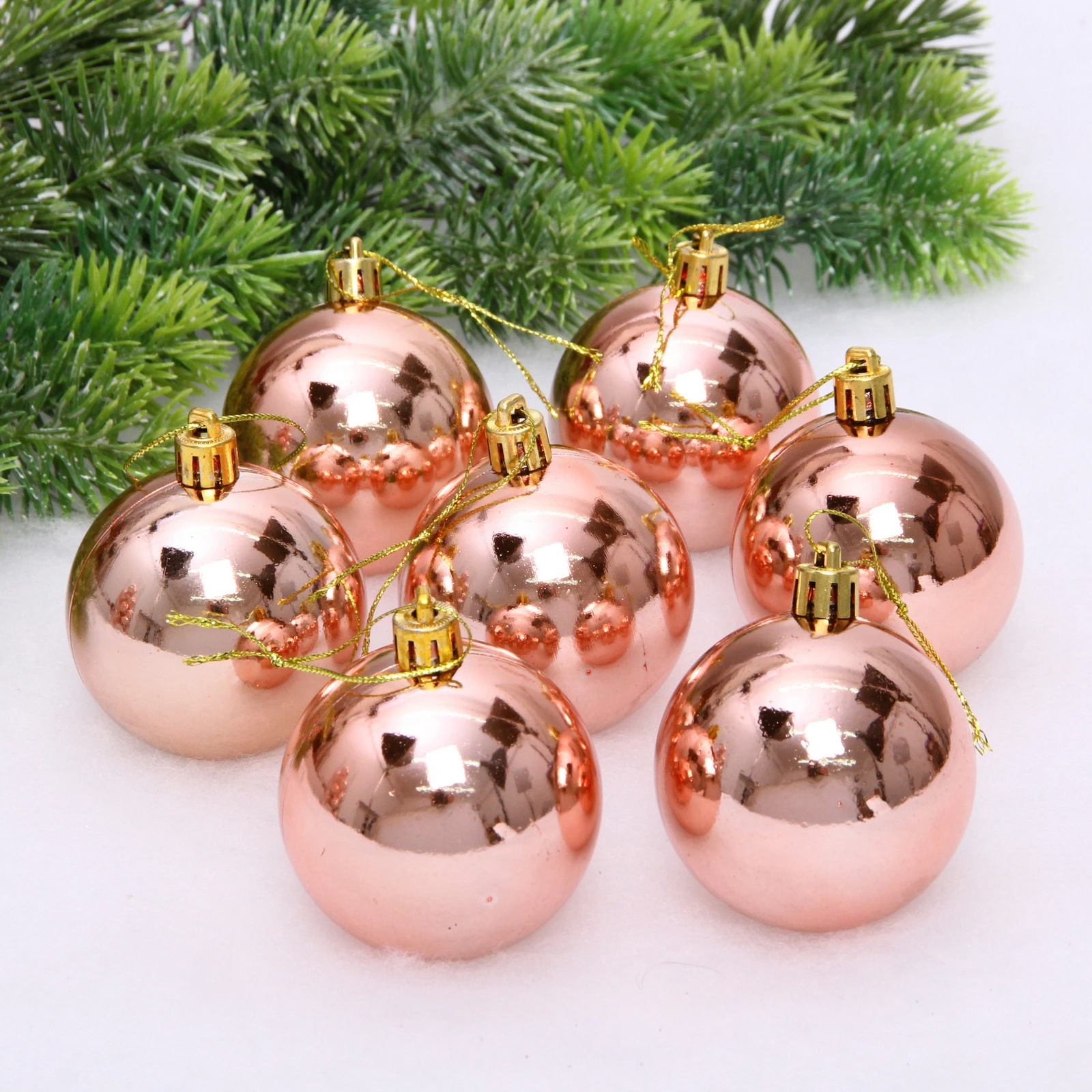 Новогодние шары 6 см (набор 24 шт) "Глянец", розовое золото