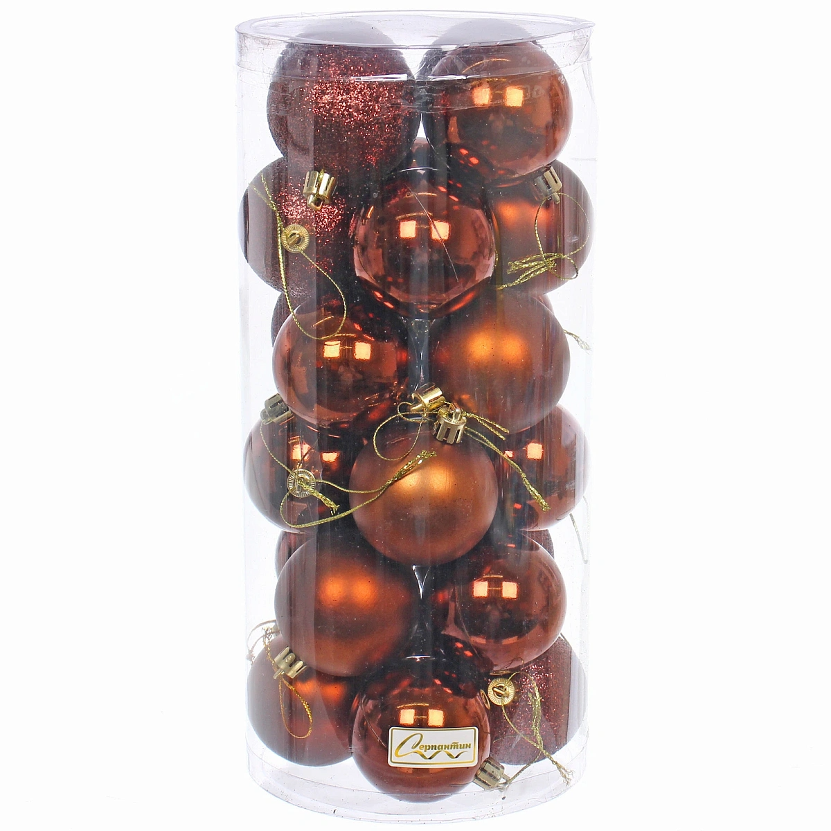Новогодние шары 6 см (набор 24 шт) "Микс фактур", шоколад