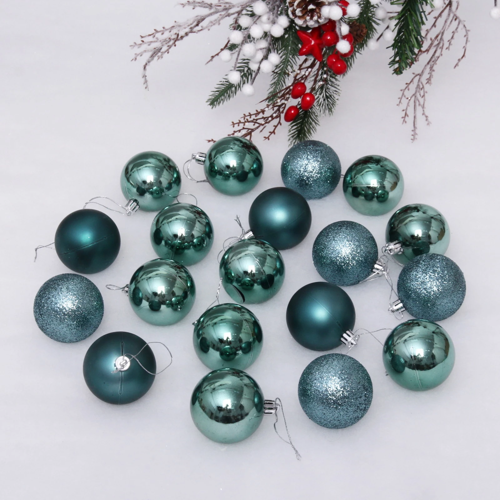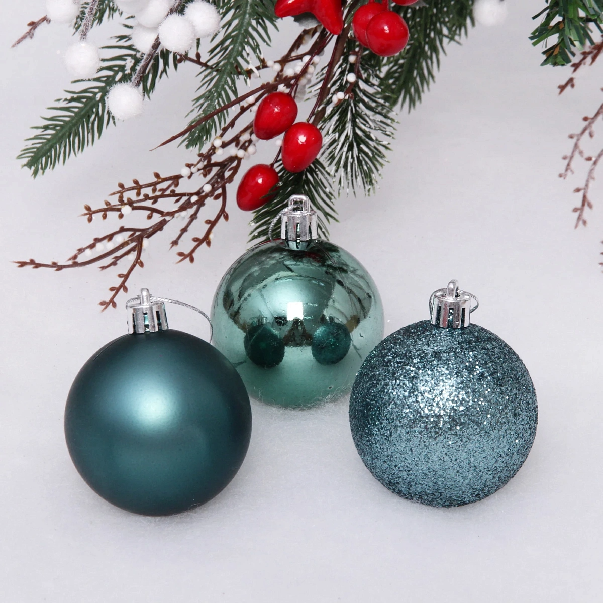 Новогодние шары 6 см (набор 24 шт) "Микс фактур", темный нефрит