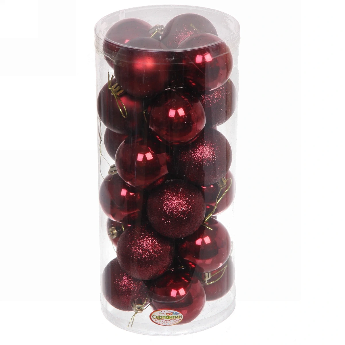 Новогодние шары 6 см (набор 24 шт) "Микс фактур", темный рубин