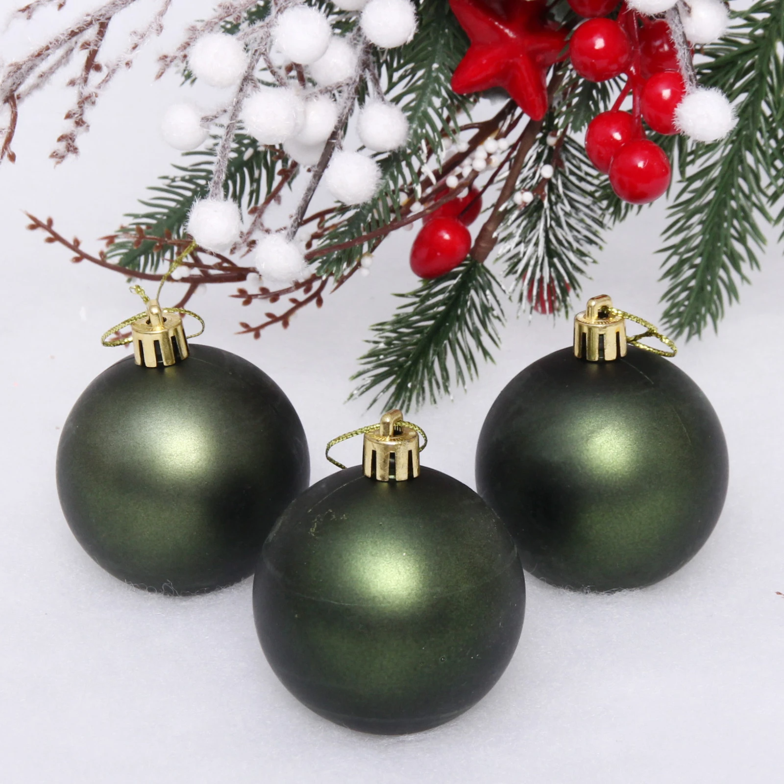 Новогодние шары 6 см (набор 3 шт) "Матовый", изумруд