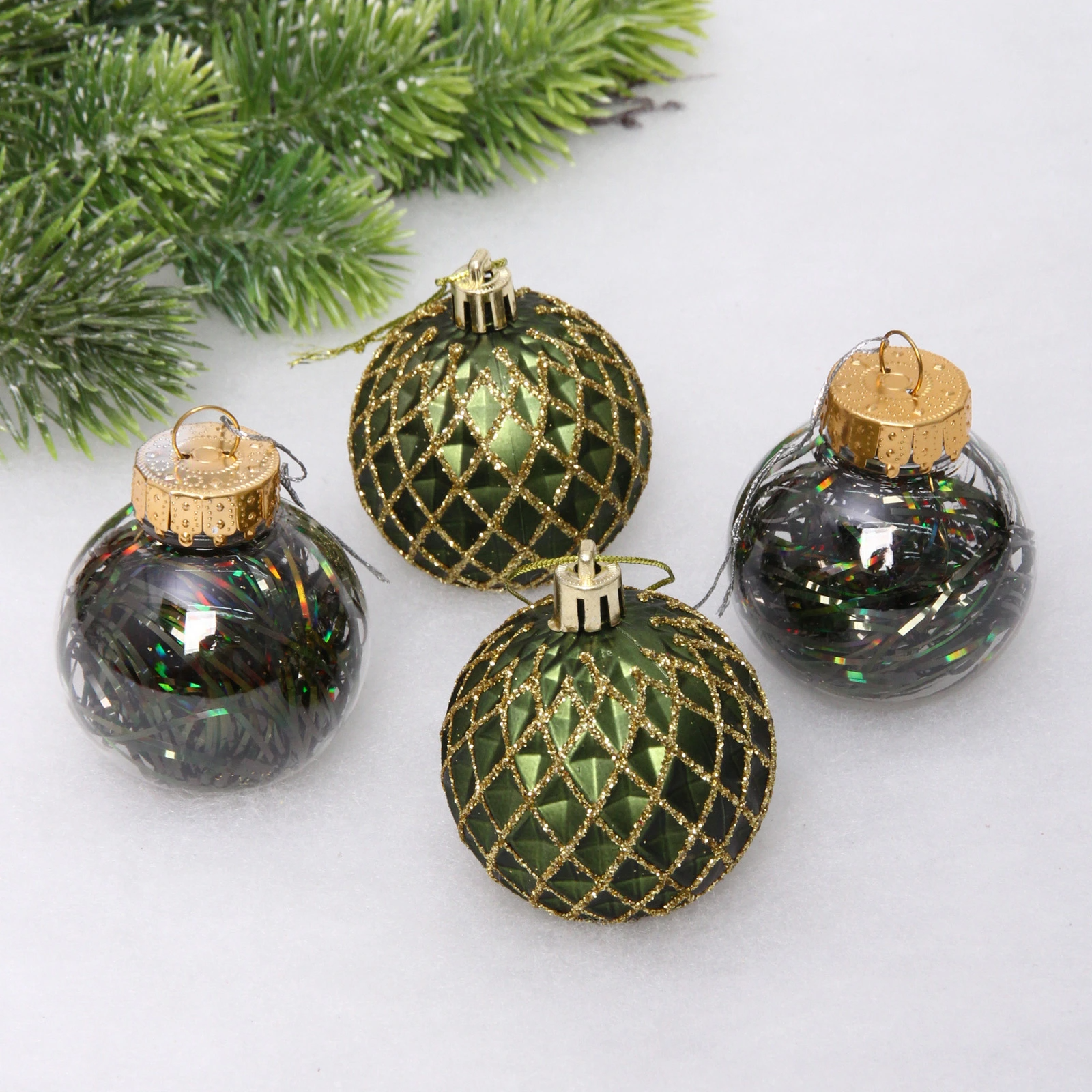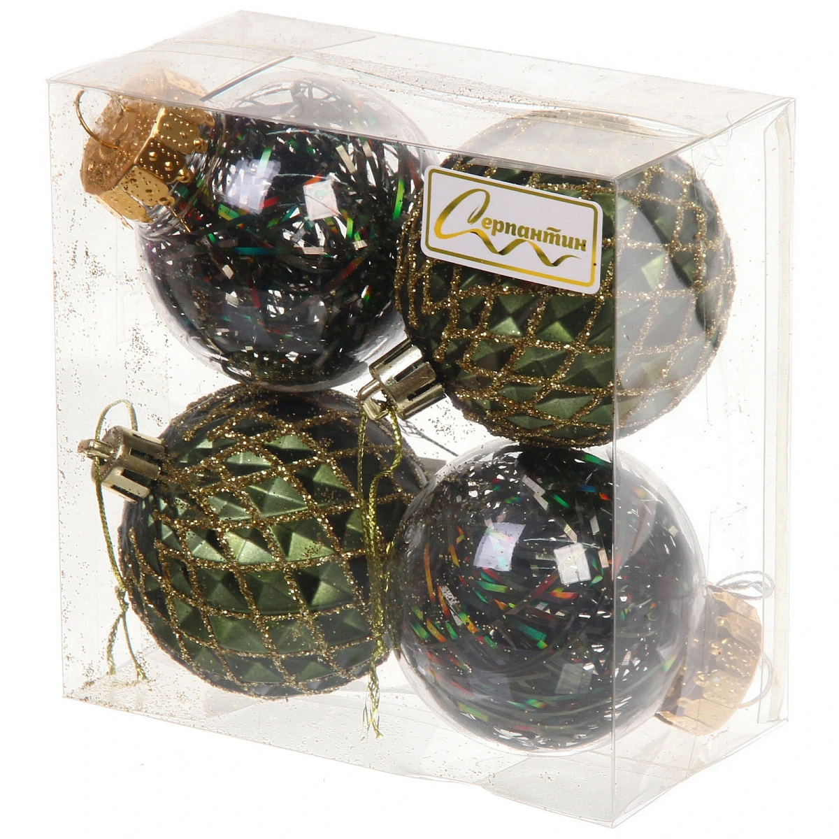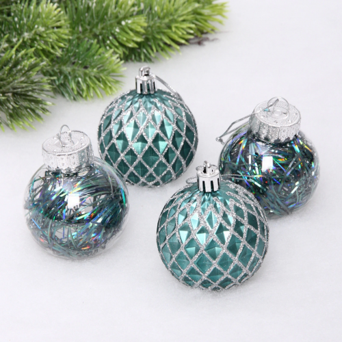 Новогодние шары 6 см (набор 4 шт) "Яркая метель", изумруд/золото