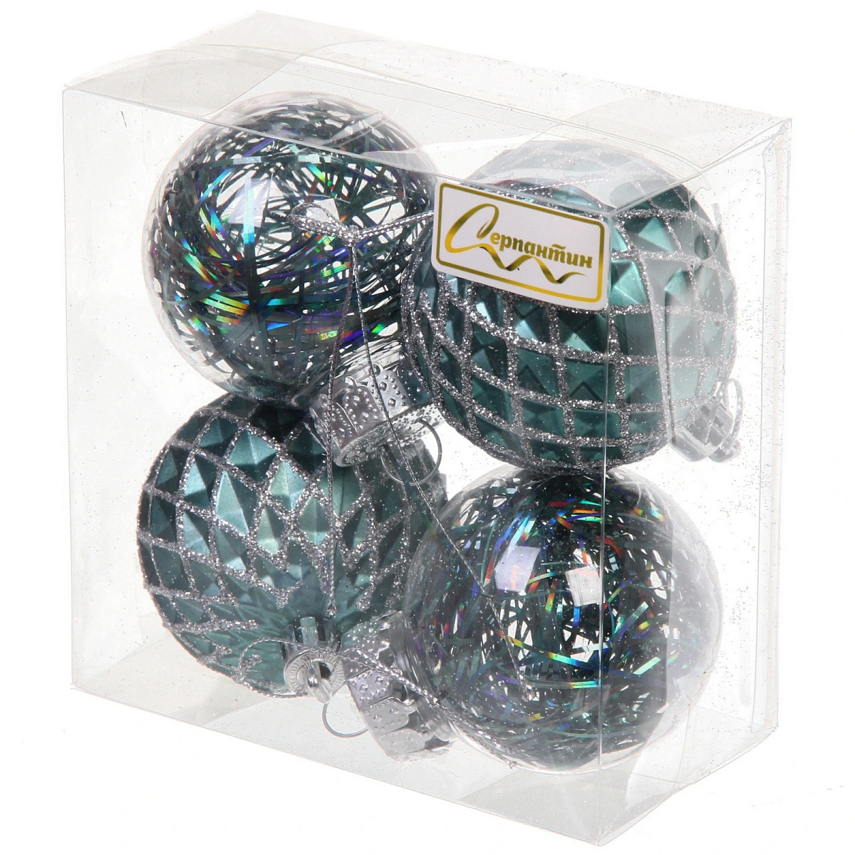 Новогодние шары 6 см (набор 4 шт) "Яркая метель", нефрит/серебро