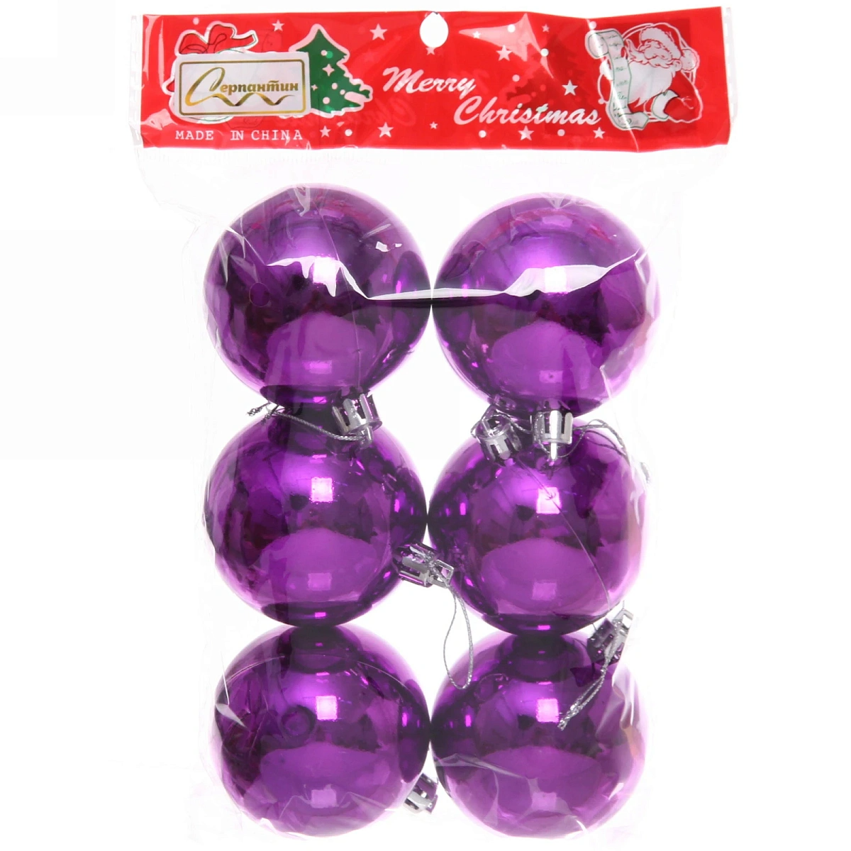 Новогодние шары 6 см (набор 6 шт) "Глянец", Фиолетовый (пакет)