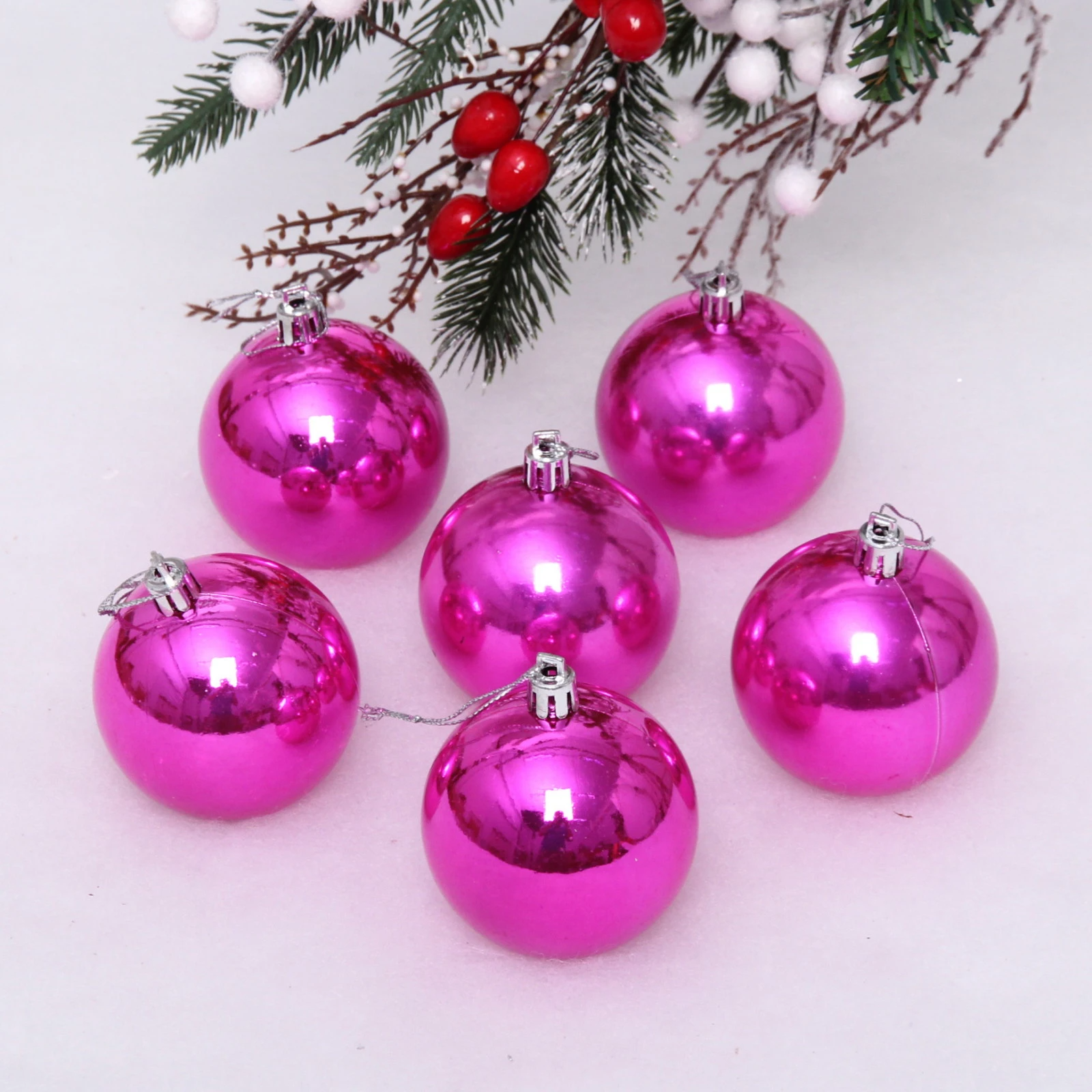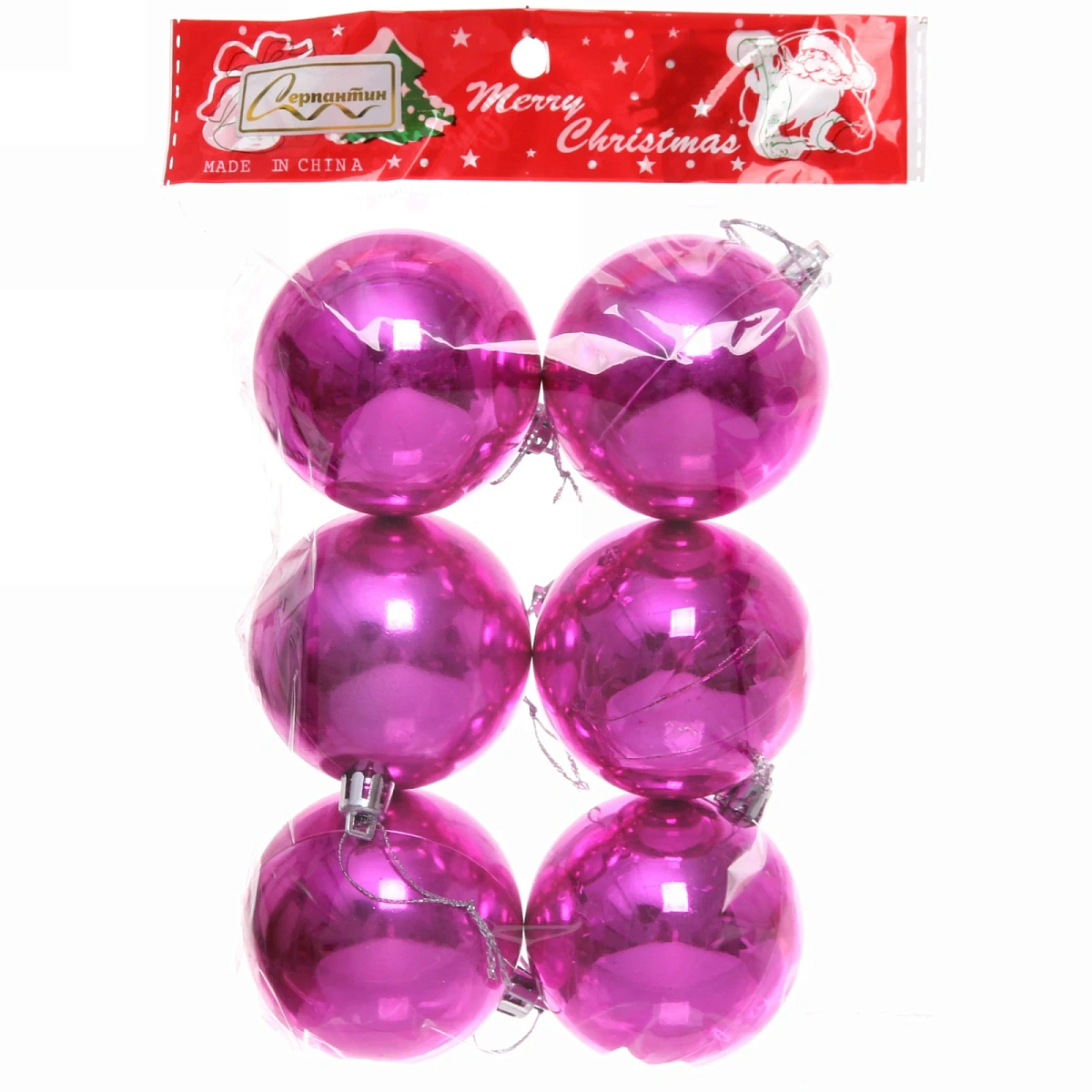 Новогодние шары 6 см (набор 6 шт) "Глянец", Розовый (пакет)