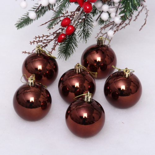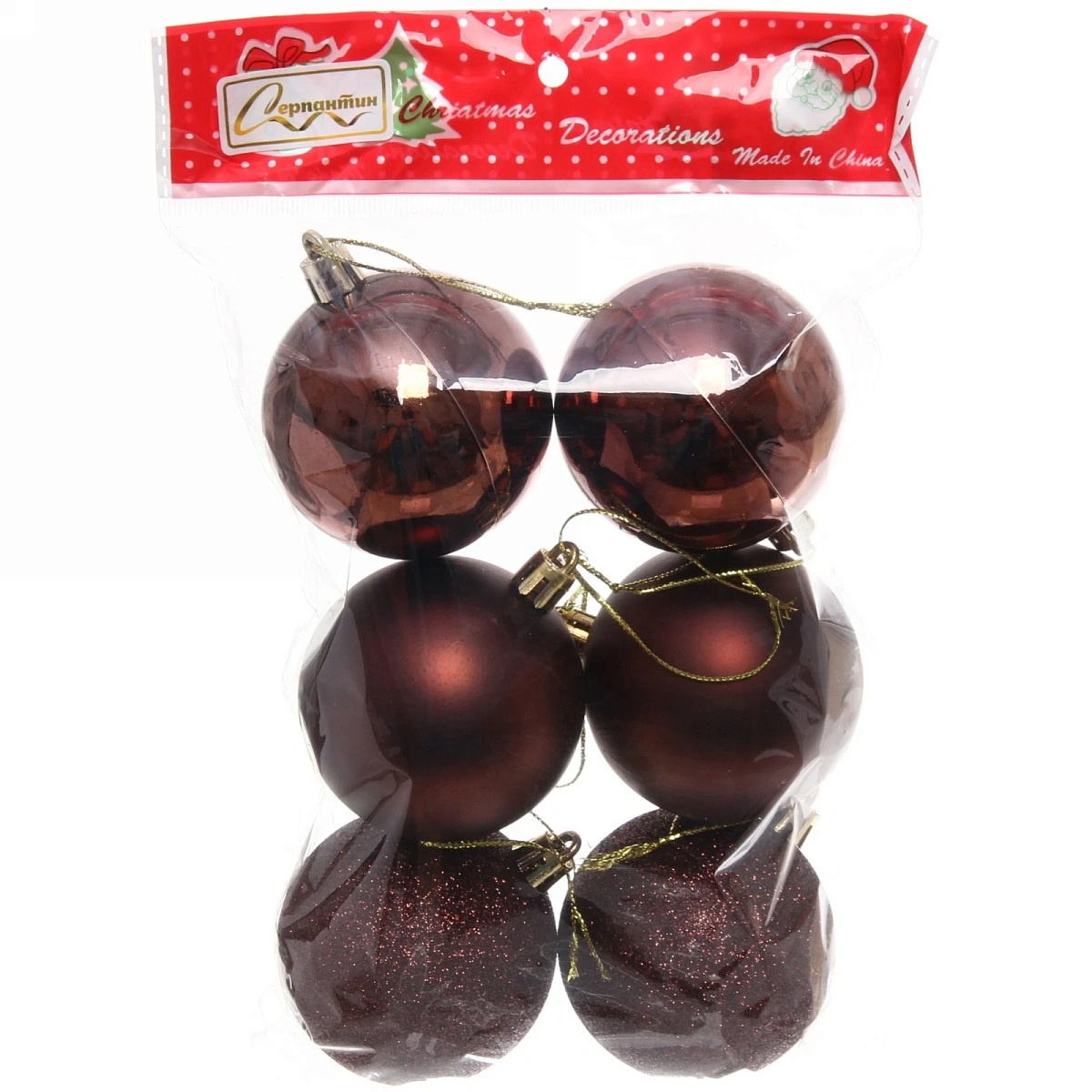 Новогодние шары 6 см (набор 6 шт) "Микс фактур", Шоколад (пакет)