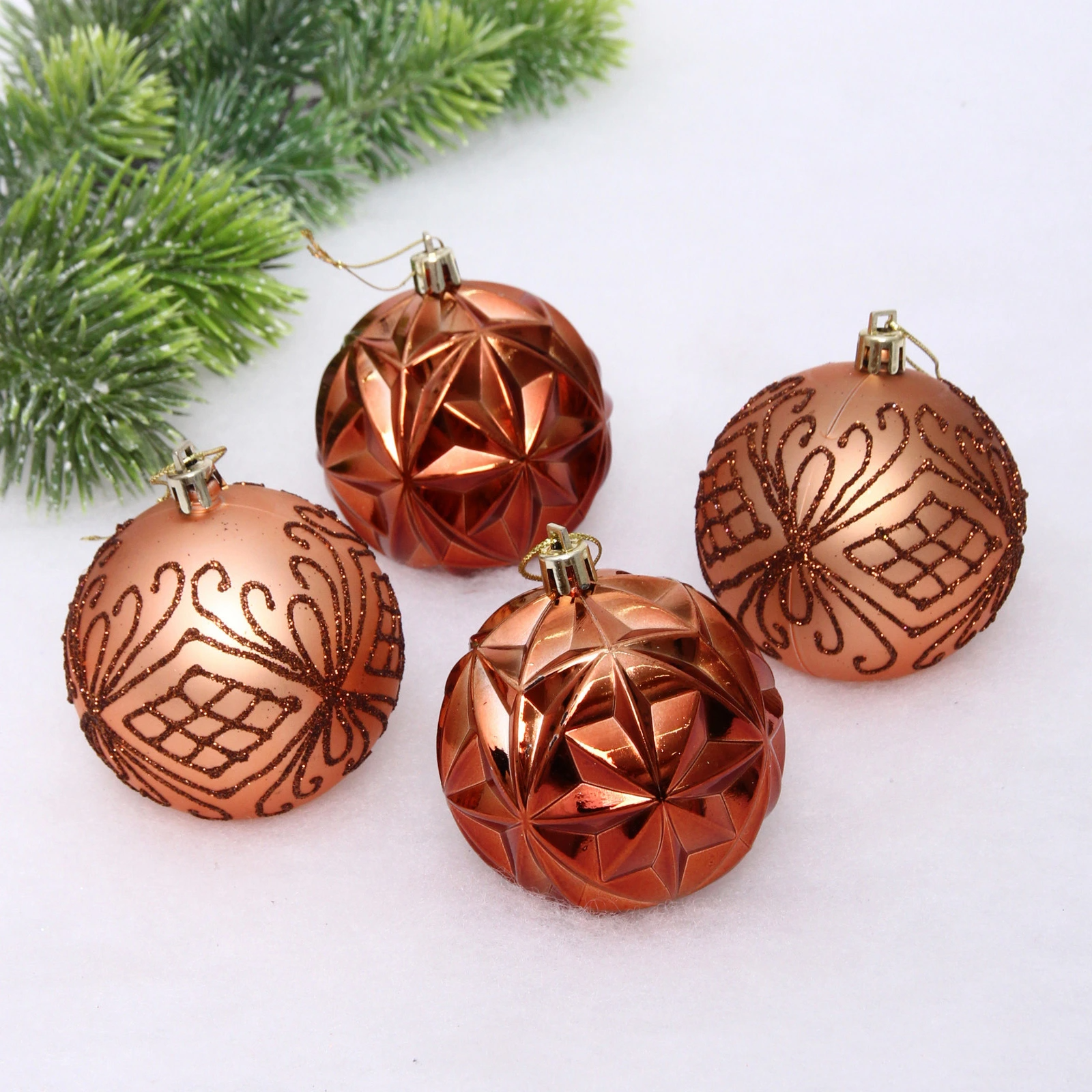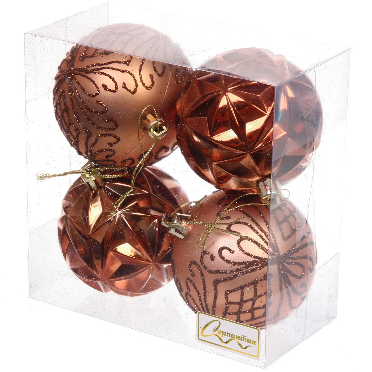 Новогодние шары 7 см (набор 4 шт) "Симфония леса", шоколад/шампань