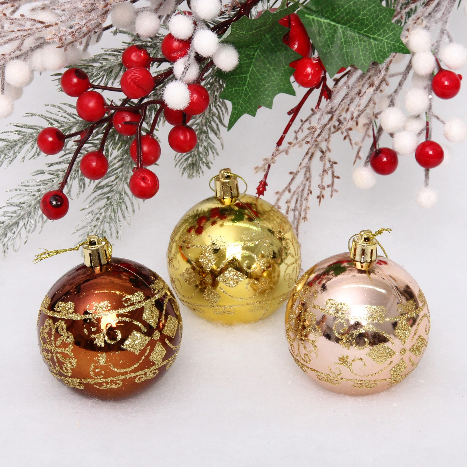 Новогодние шары 7см (набор 3шт) "Ажур", шоколад/золото/шампань