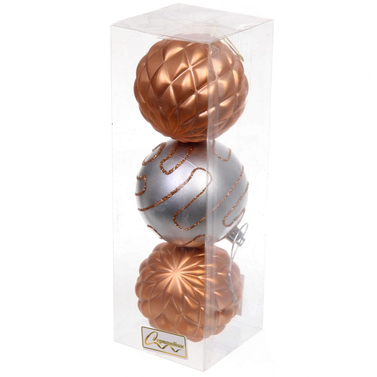 Новогодние шары 7см (набор 3шт) "Сказочная мечта", серебро/шампань
