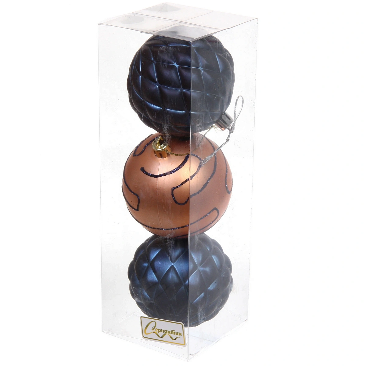 Новогодние шары 7см (набор 3шт) "Сказочная мечта", шампань/сапфир