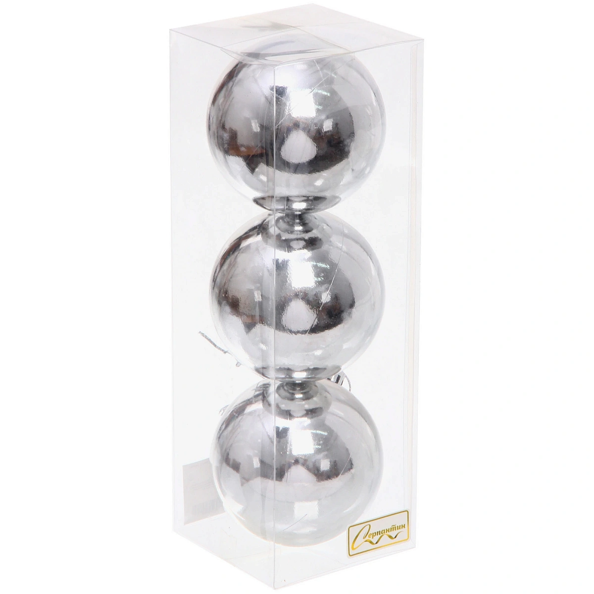 Новогодние шары 8 см (набор 3 шт) "Глянец", серебро