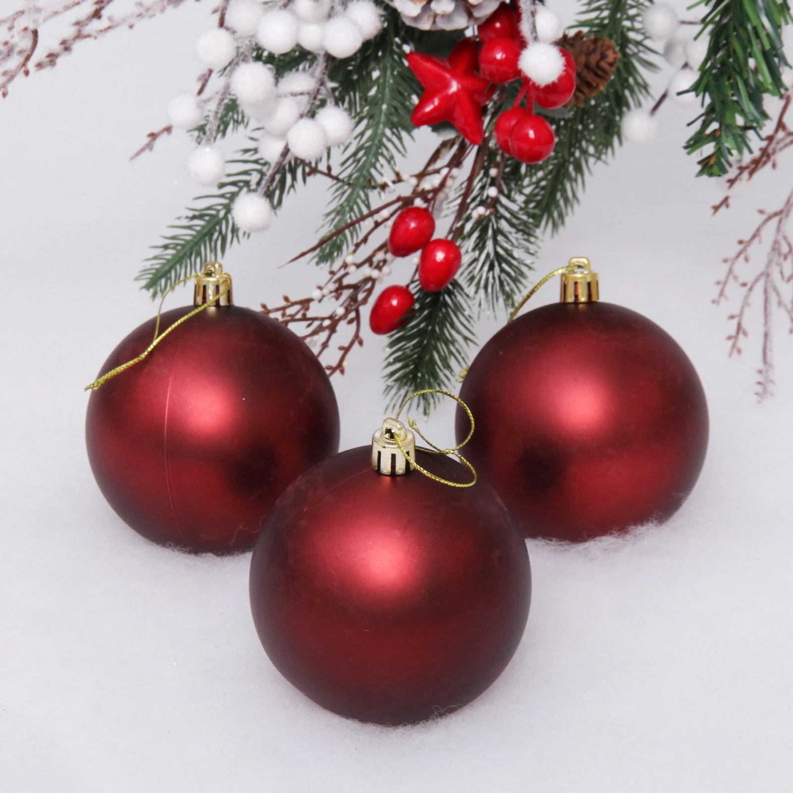 Новогодние шары 8 см (набор 3 шт) "Матовый", темный рубин