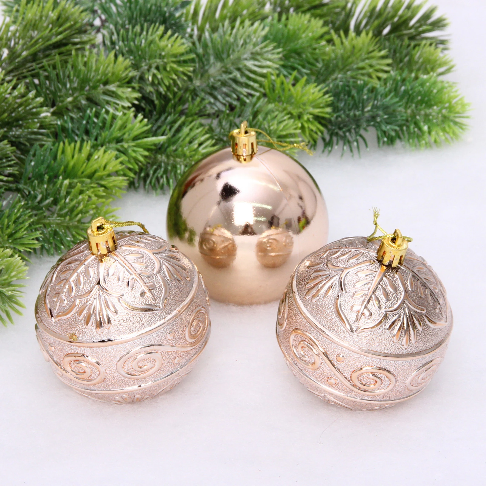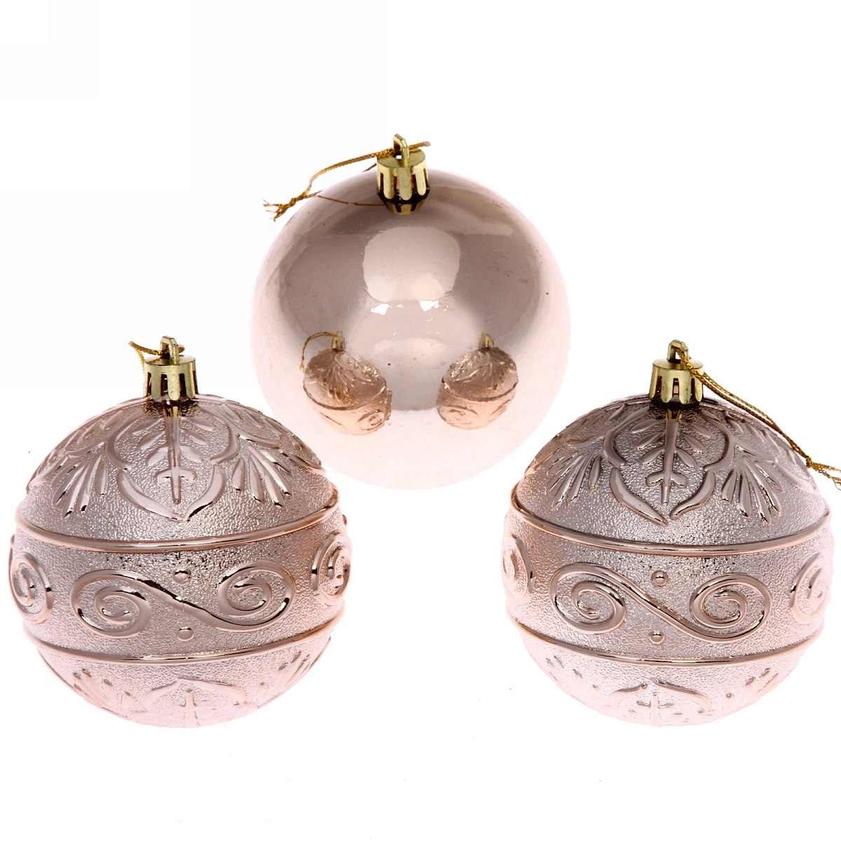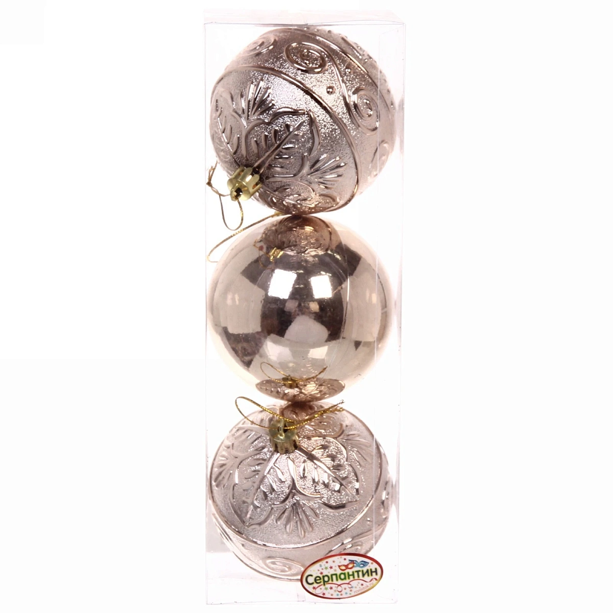 Новогодние шары 8 см (набор 3 шт) "Микс фактур", шампань
