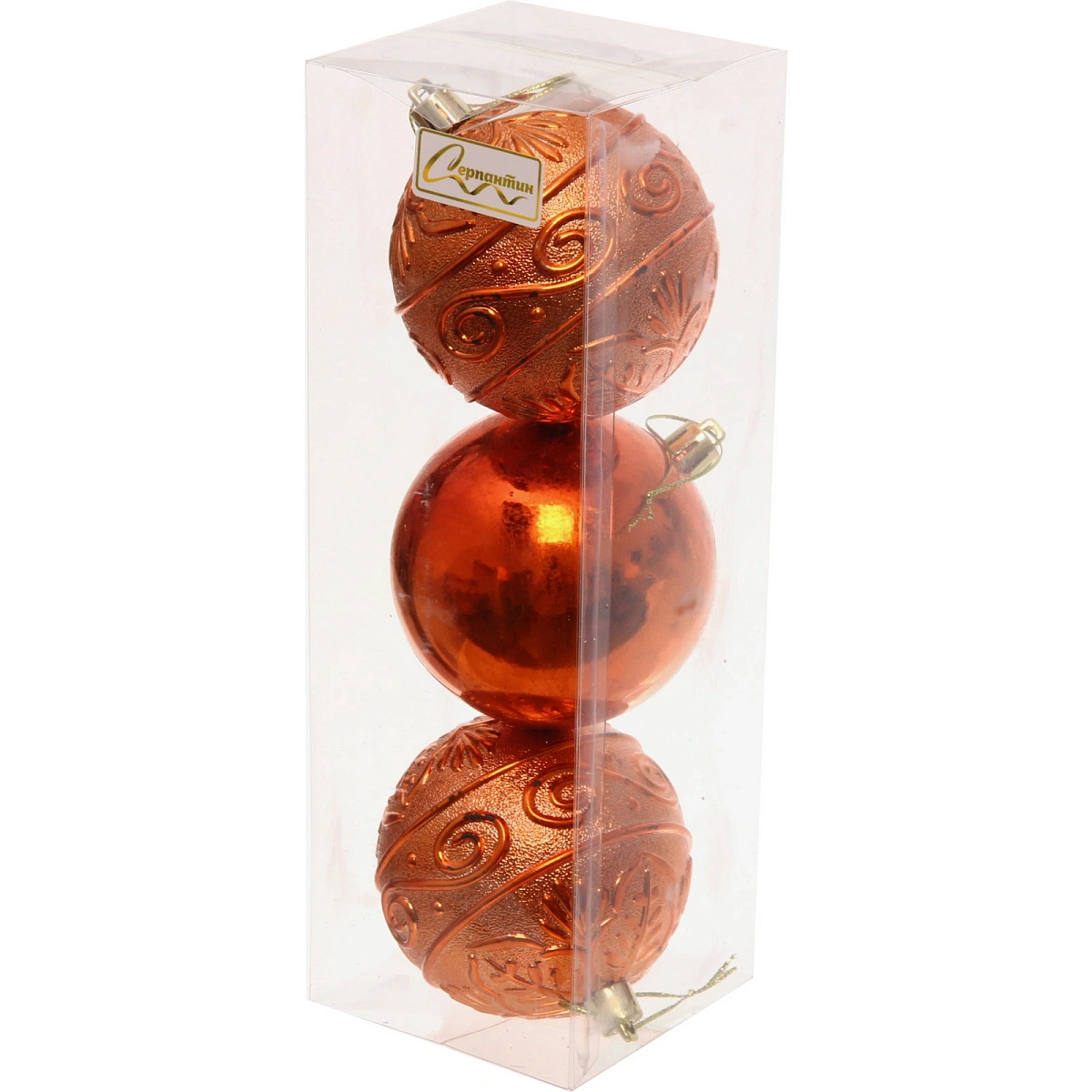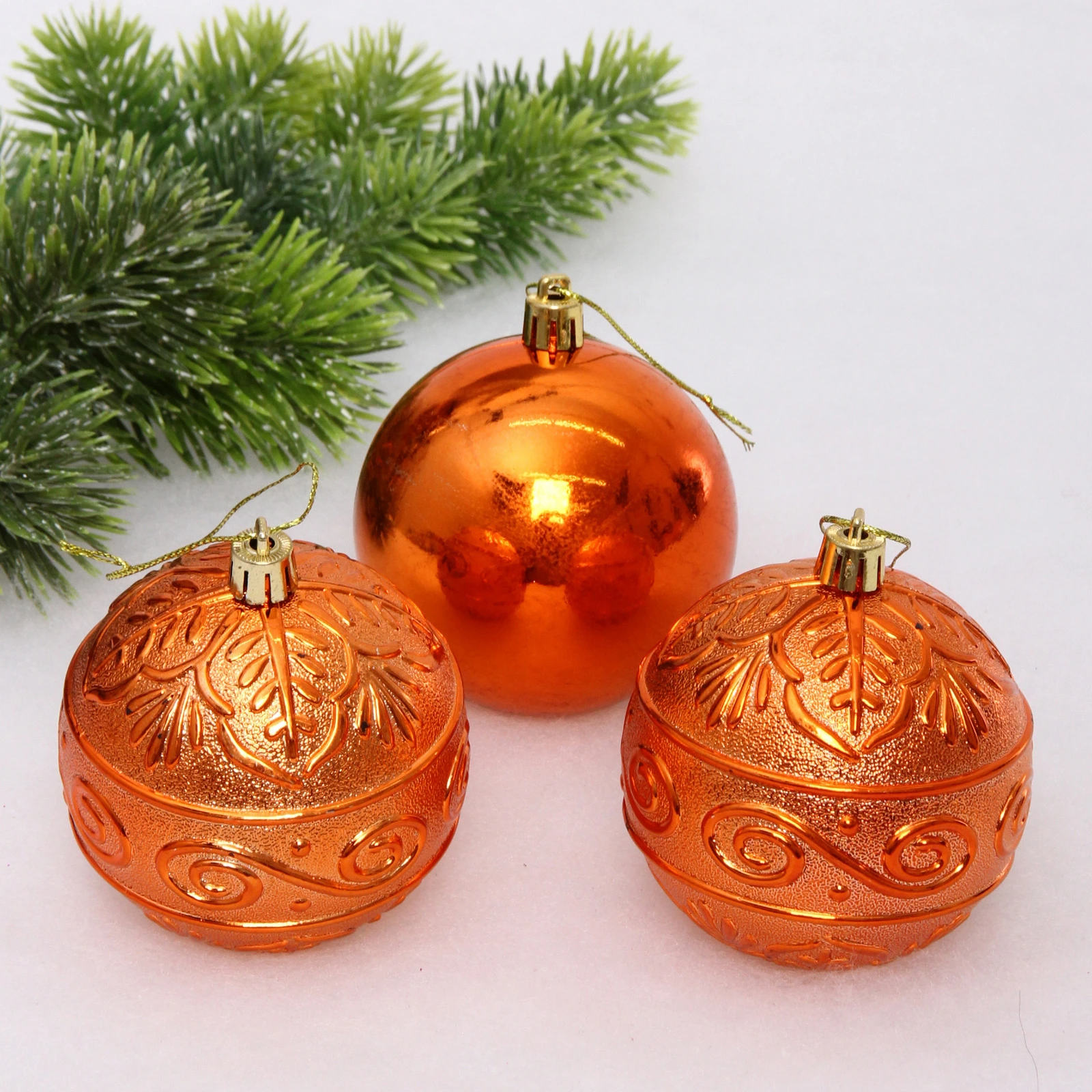 Новогодние шары 8 см (набор 3 шт) "Микс фактур", янтарь
