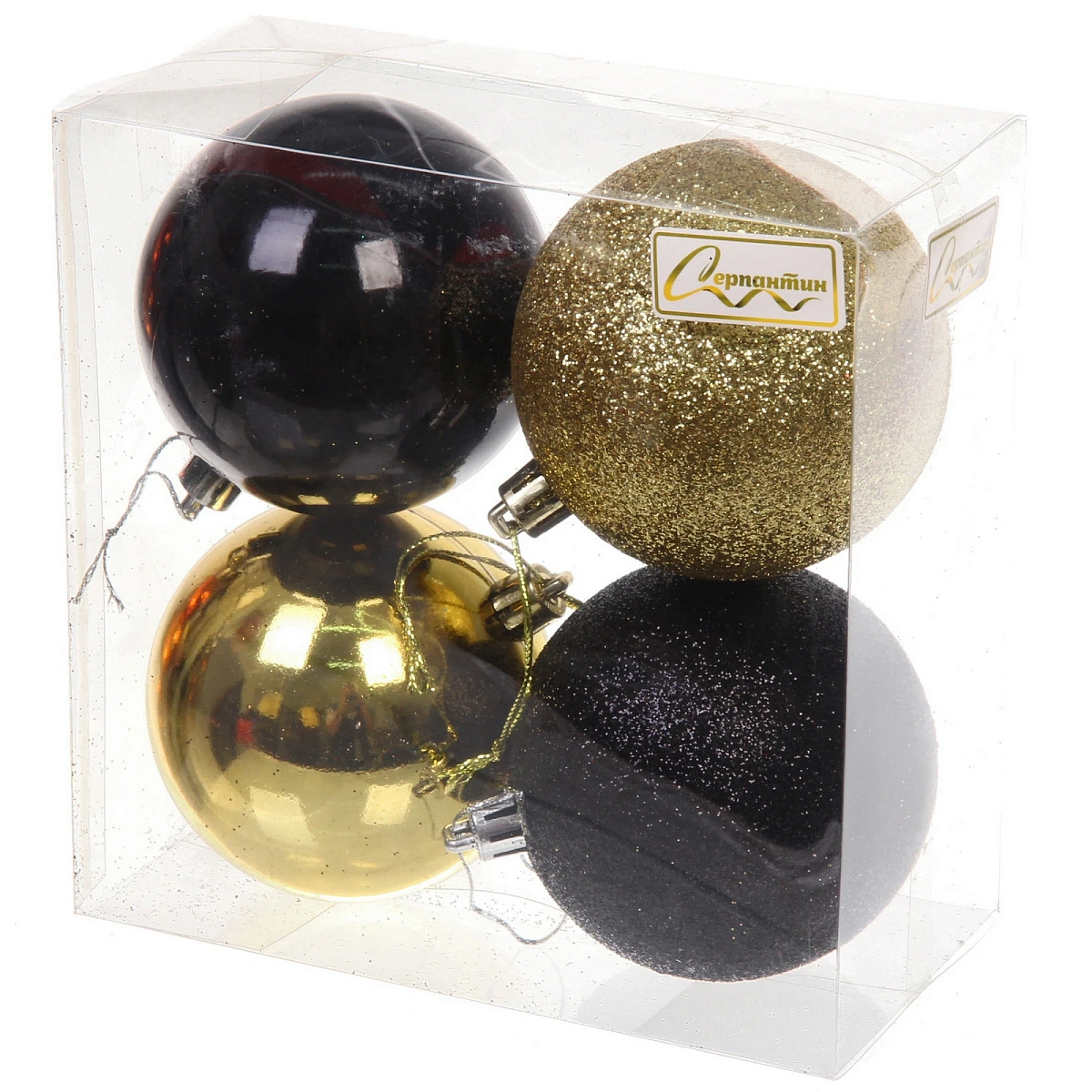 Новогодние шары 8 см (набор 4 шт) "Микс фактур", черный/золотой