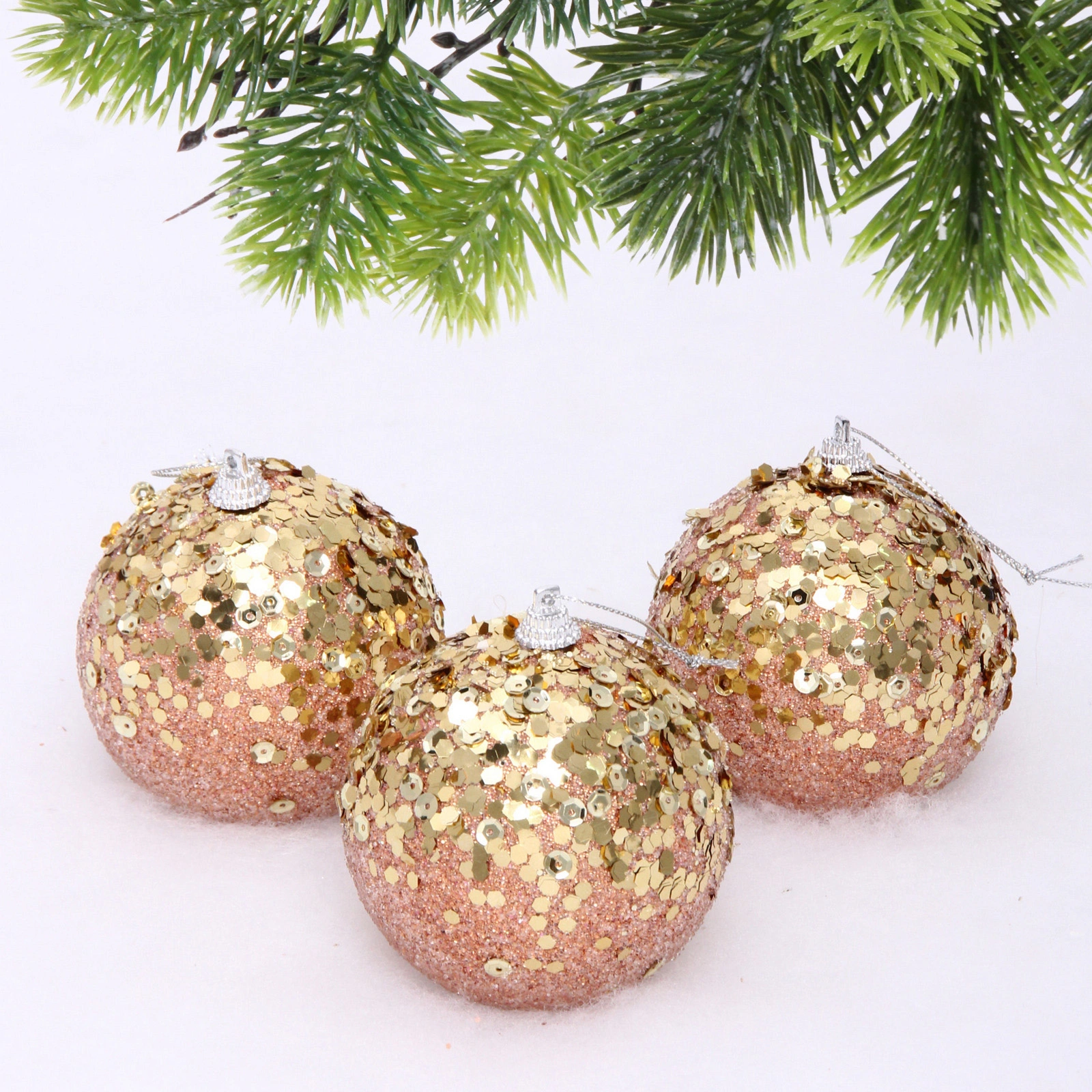 Новогодние шары "GLAME - Блеск" 8 см (набор 3 шт), Розовое золото