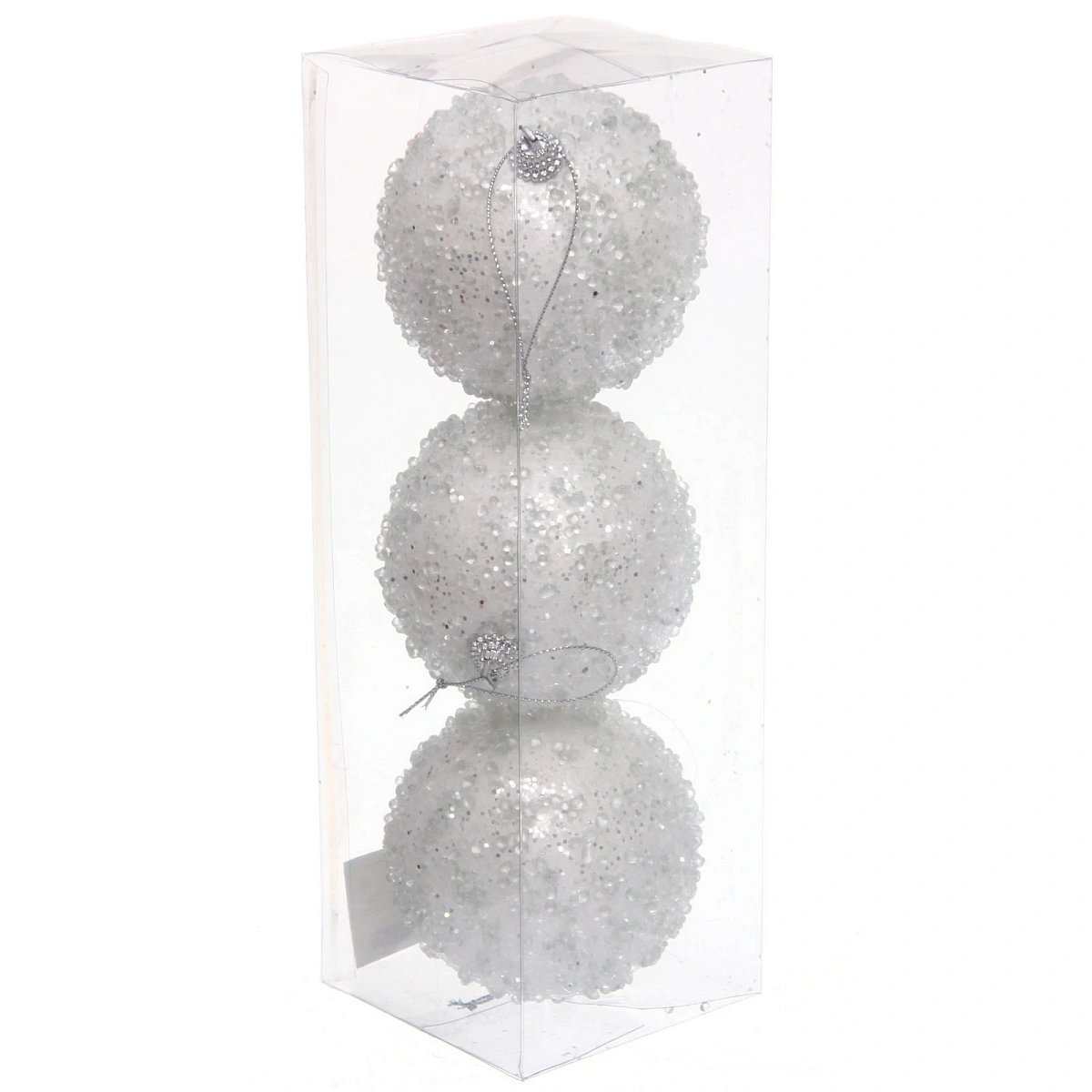 Новогодние шары "GLAME - Искра" 8 см (набор 3 шт), Белый