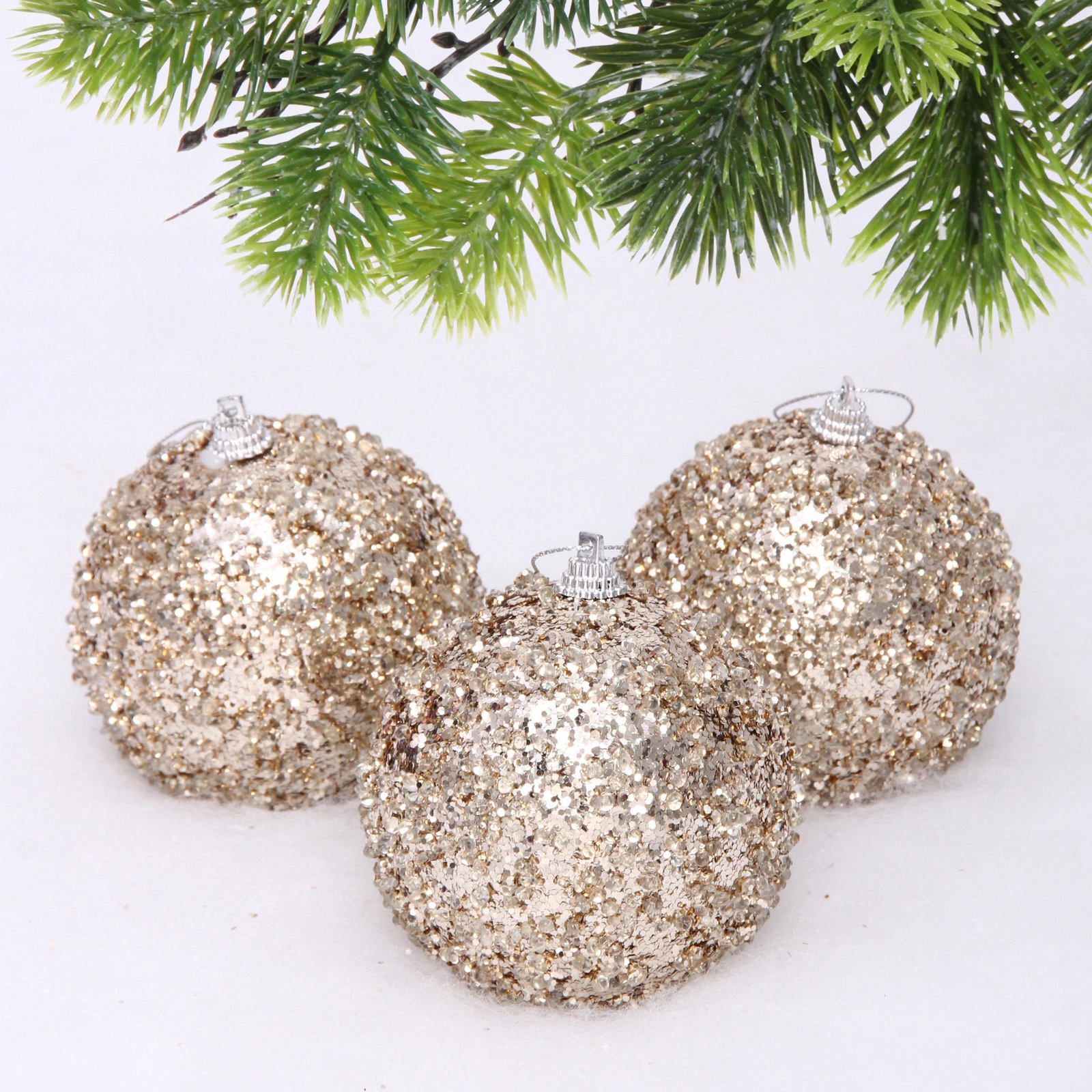 Новогодние шары "GLAME - Искра" 8 см (набор 3 шт), Шампань