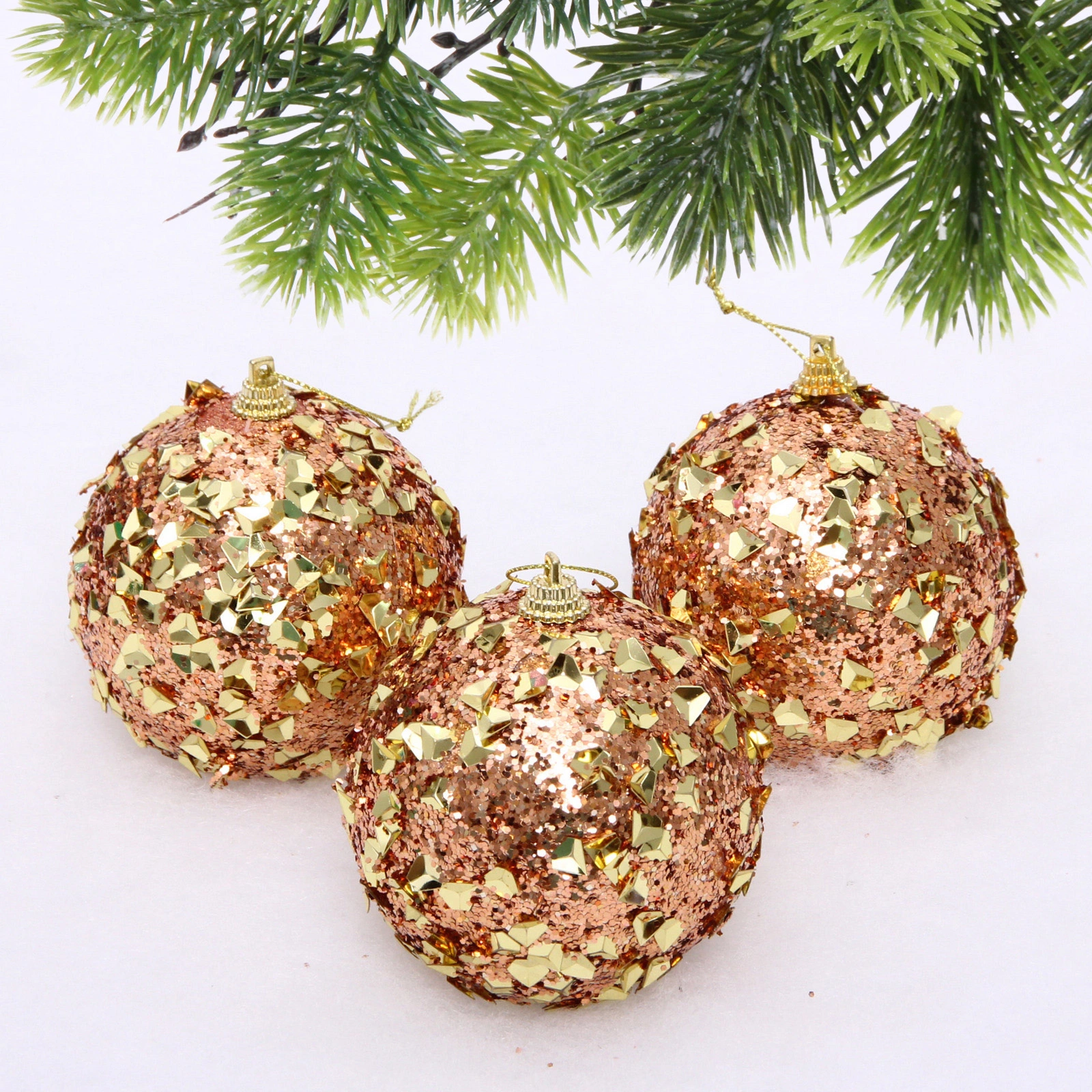 Новогодние шары "GLAME - Волшебный блеск" 8 см (набор 3 шт), Розовое золото