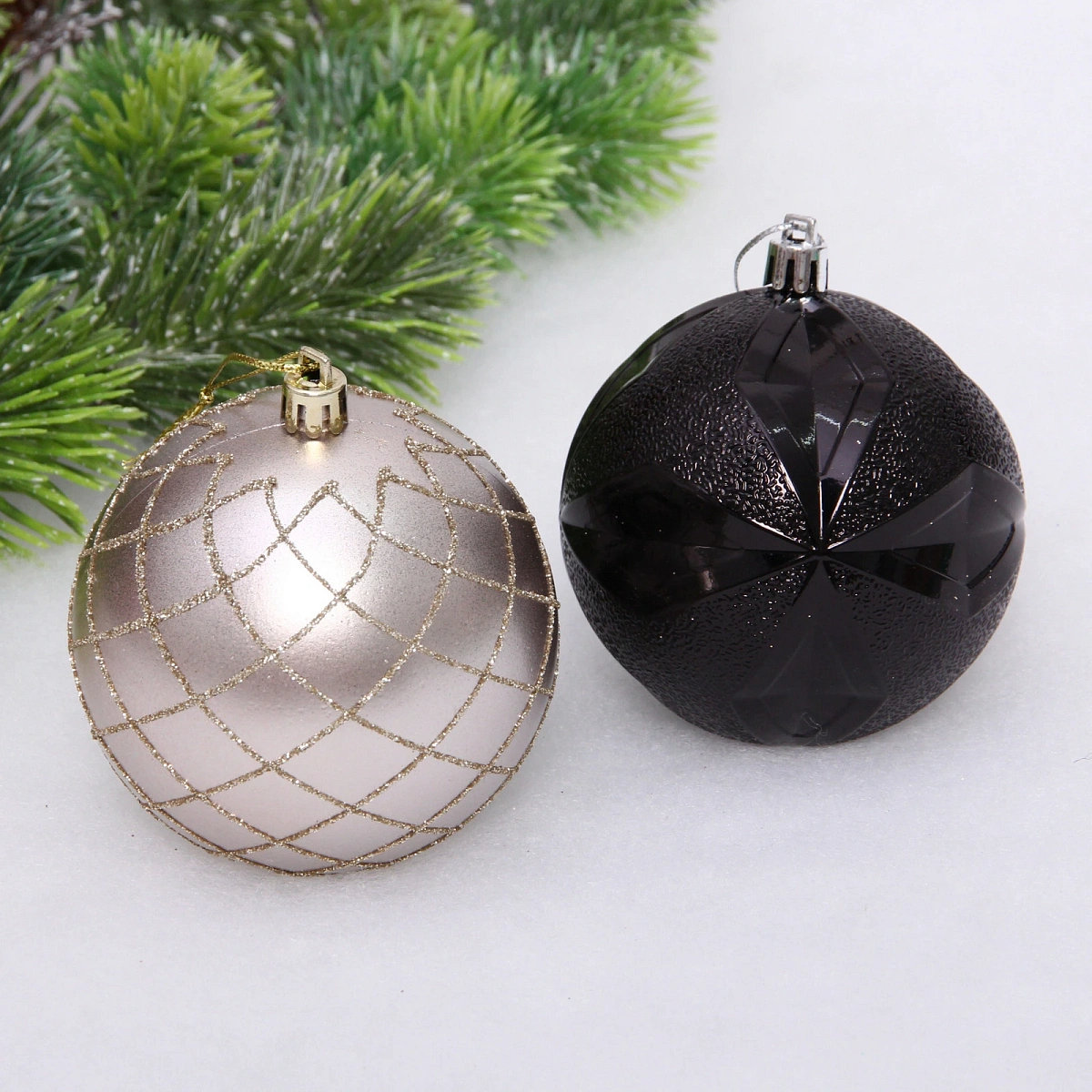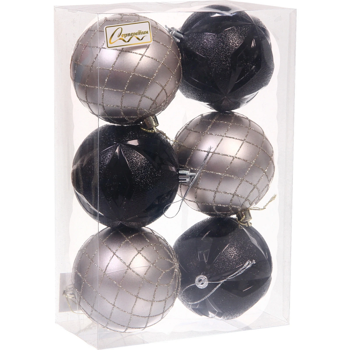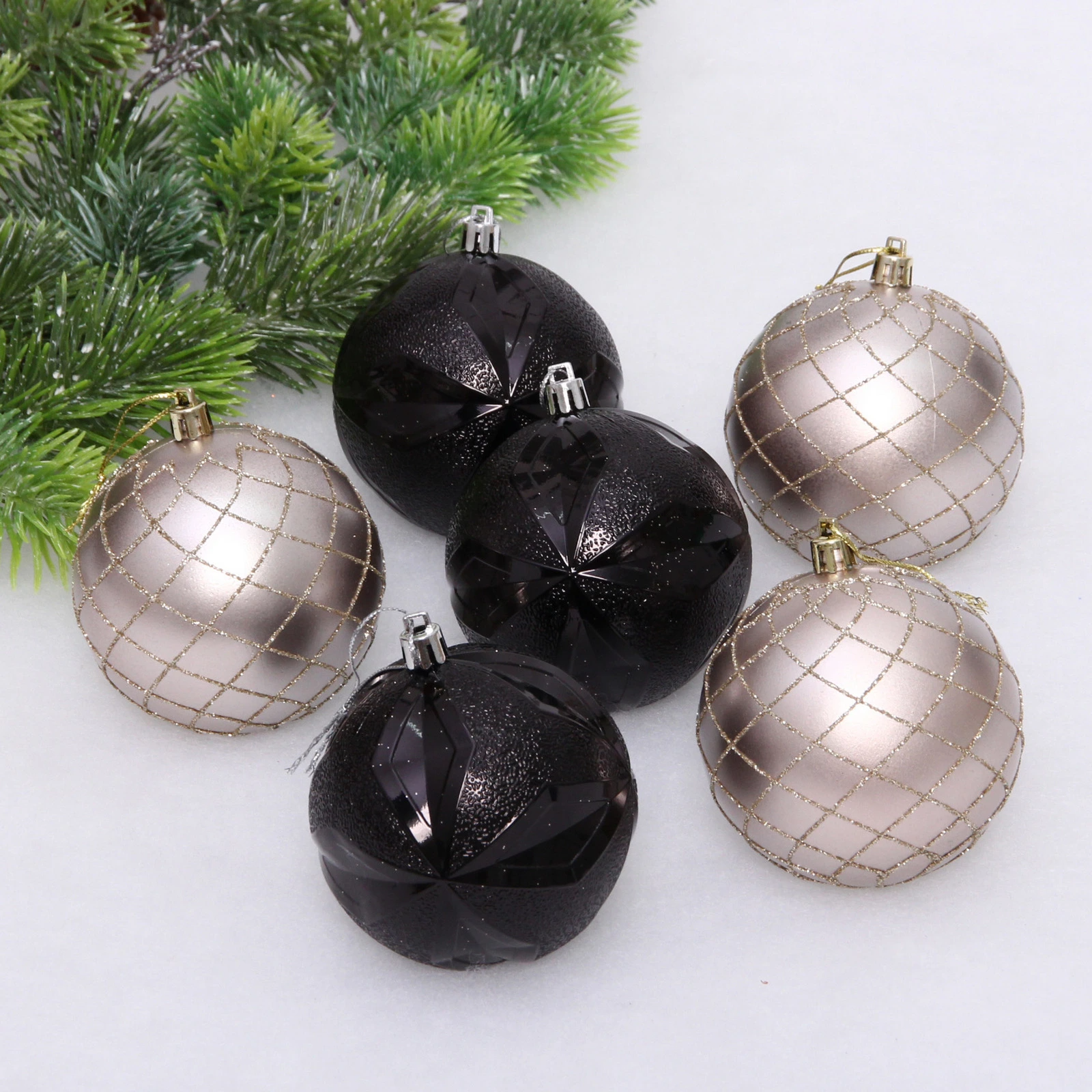 Новогодние шары "Снежный вальс" 8 см (набор 6 шт), Черный/Шампань