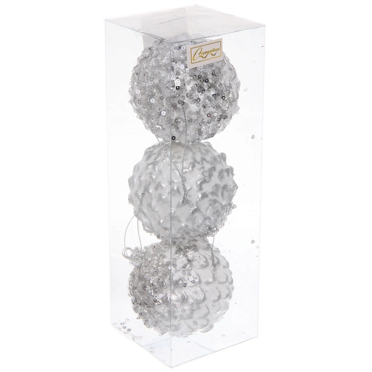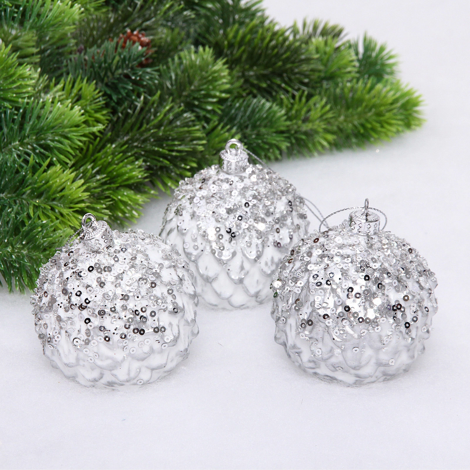 Новогодние шары VERSAILLES "Кефея" 8 см (набор 3 шт), Серебро