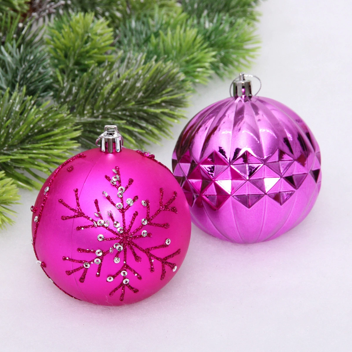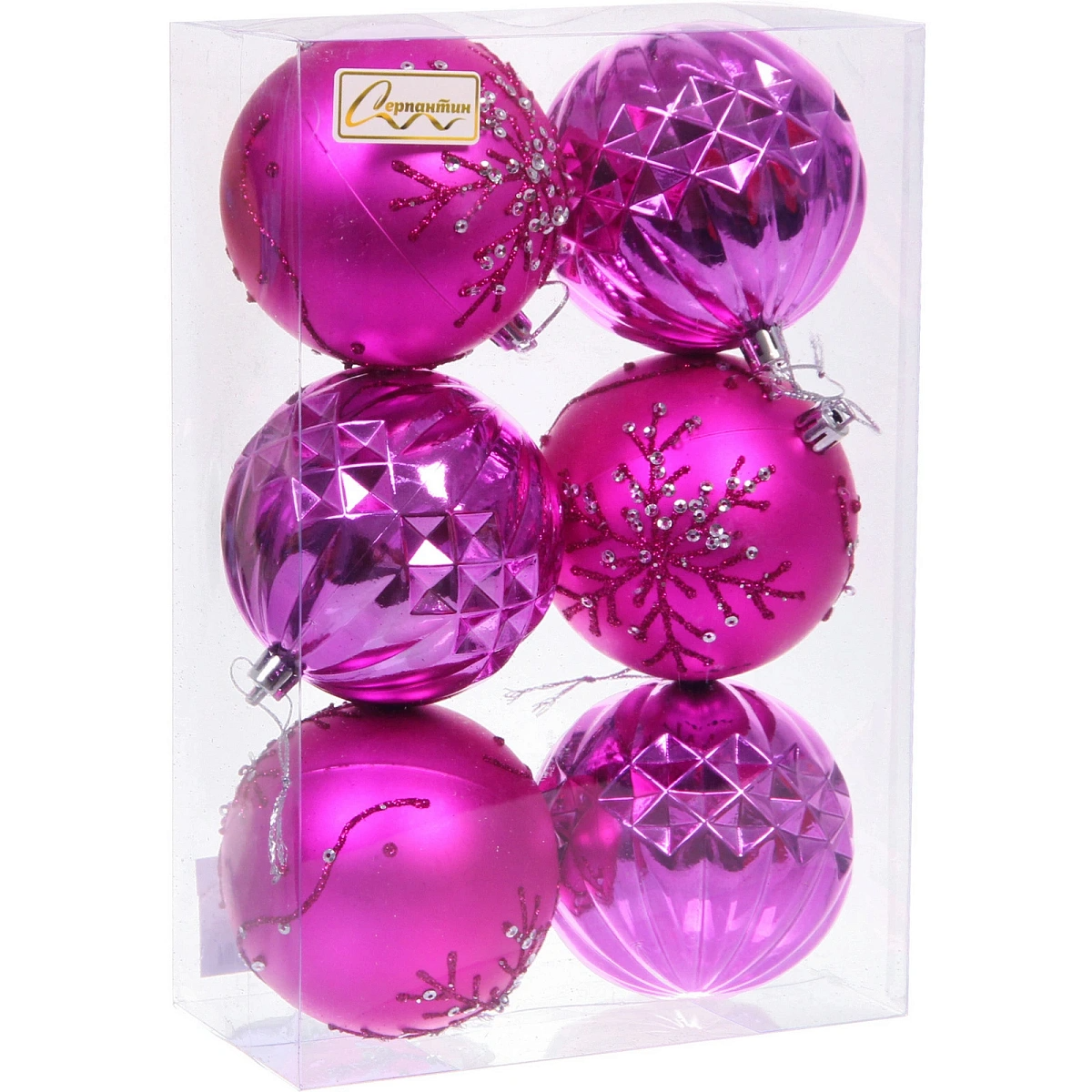 Новогодние шары "Волшебный бал" 8 см (набор 6 шт), Фиолетовый/Фуксия