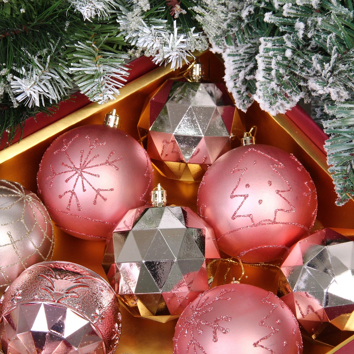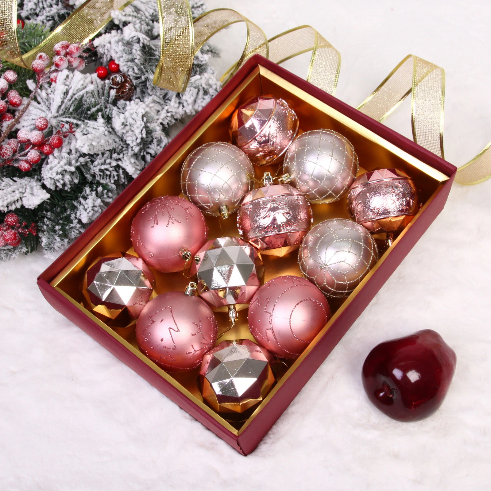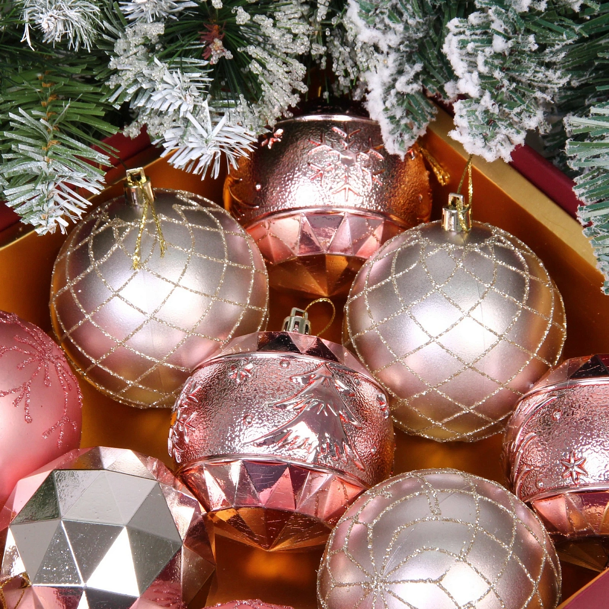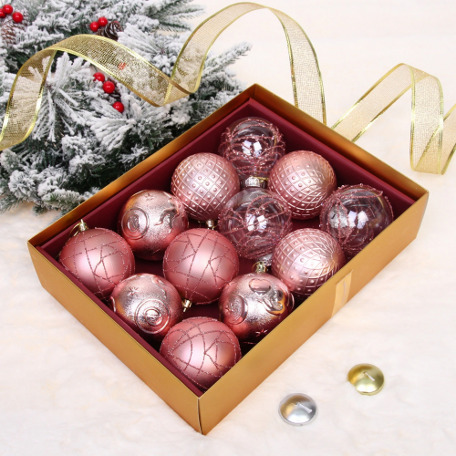 Новогодние шары "Волшебный вальс" 8 см (набор 12 шт), Розовое золото/Шампань
