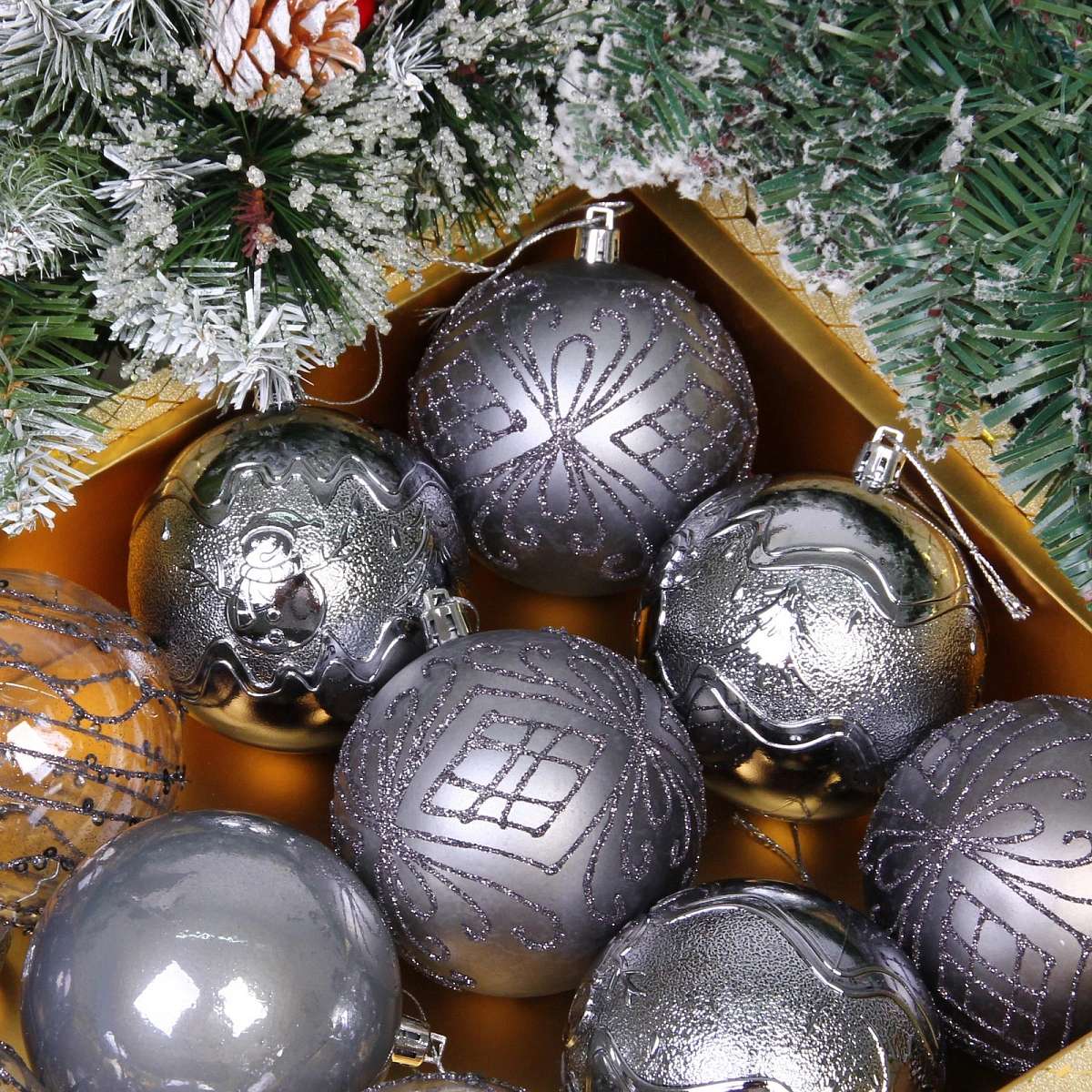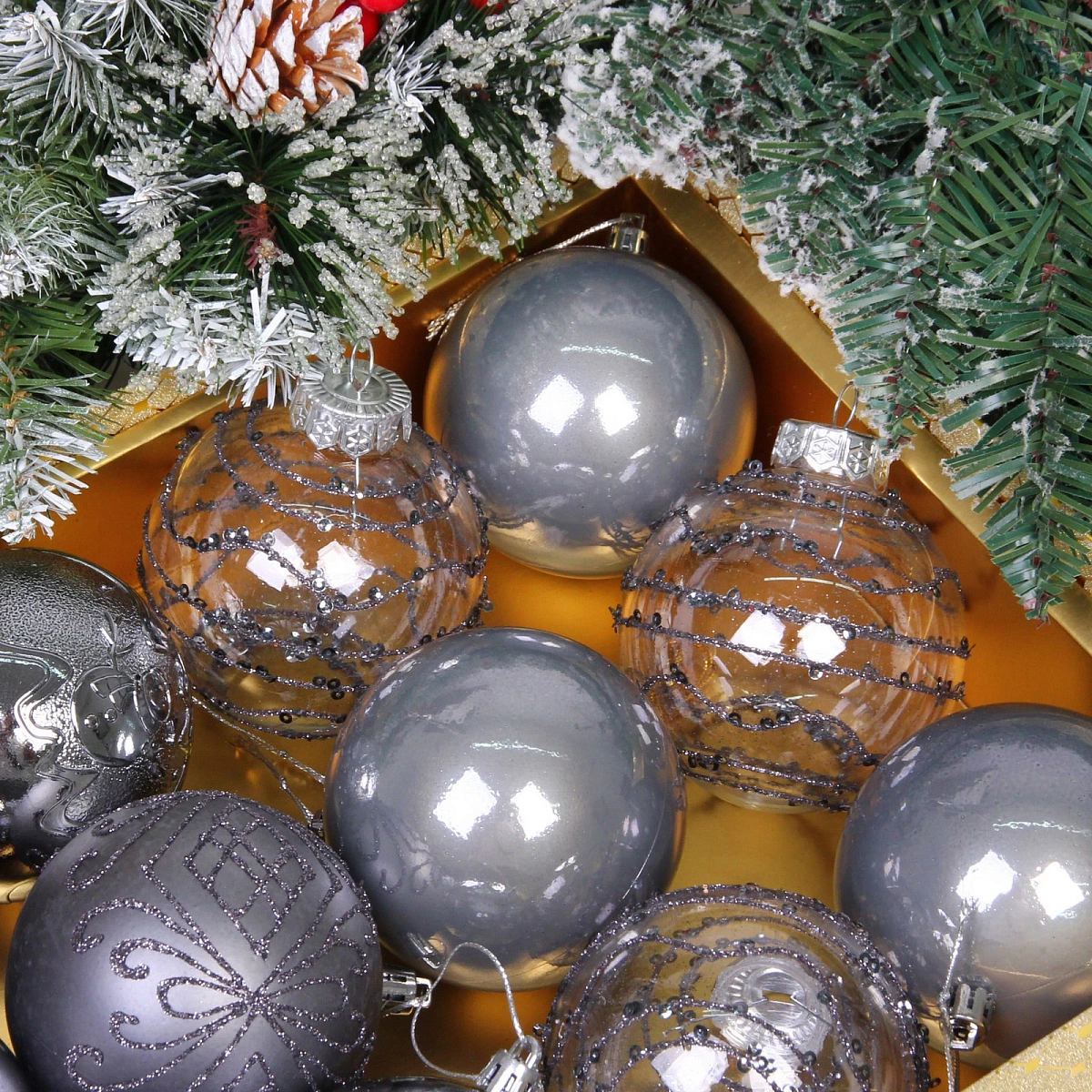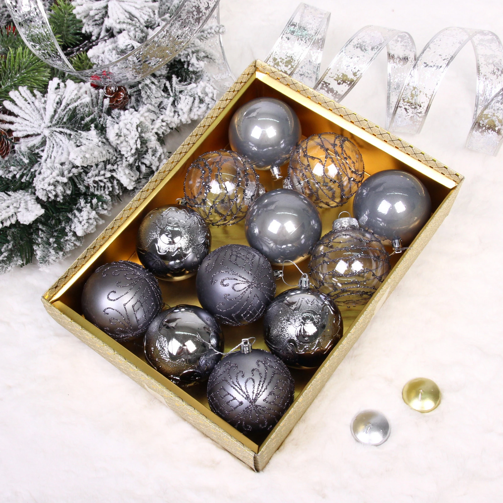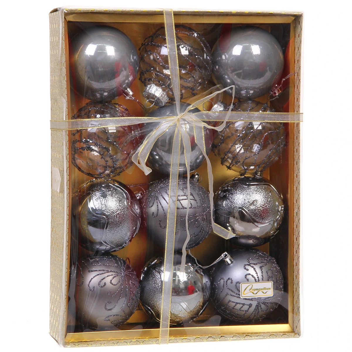 Новогодние шары "Волшебство ночи" 8 см (набор 12 шт), Графит