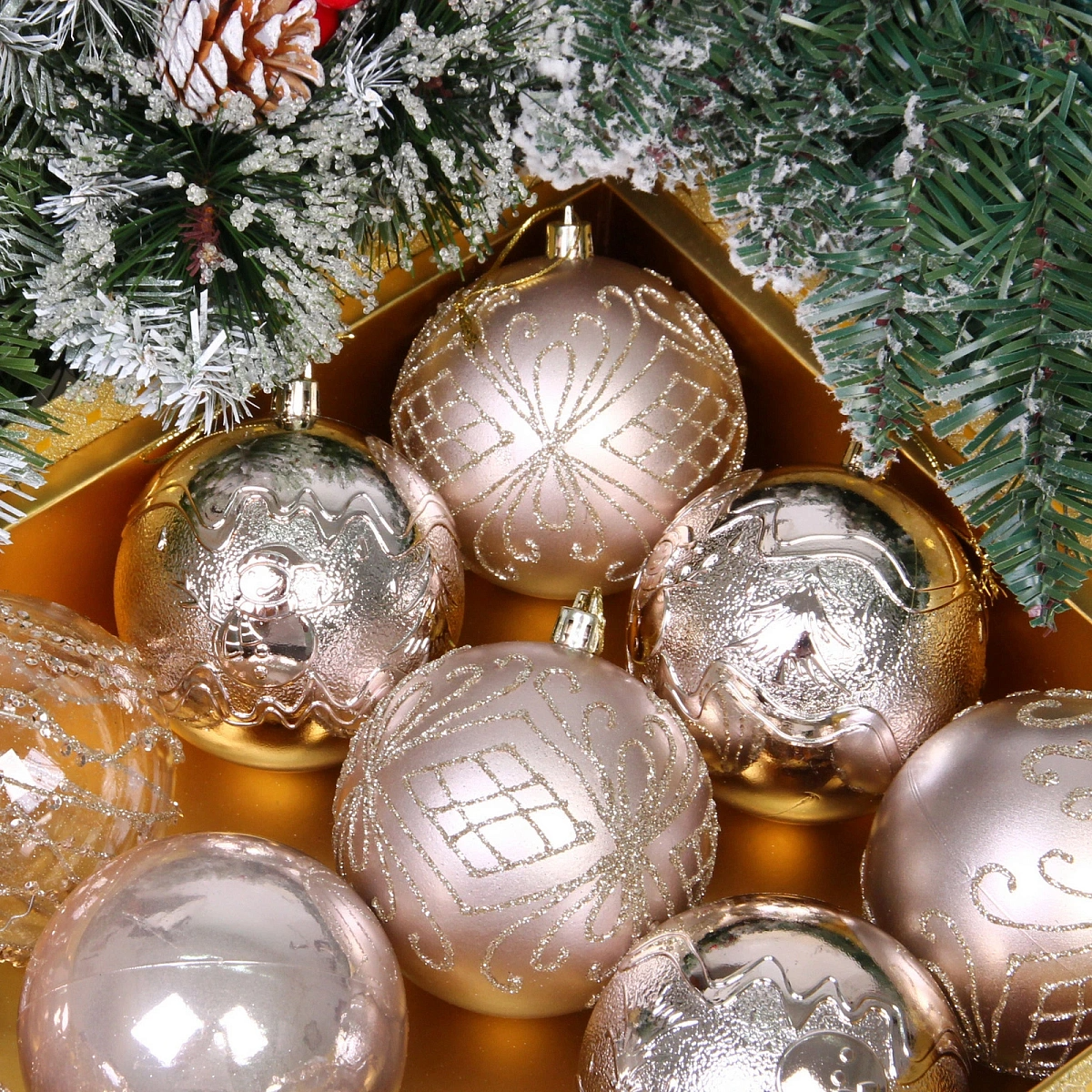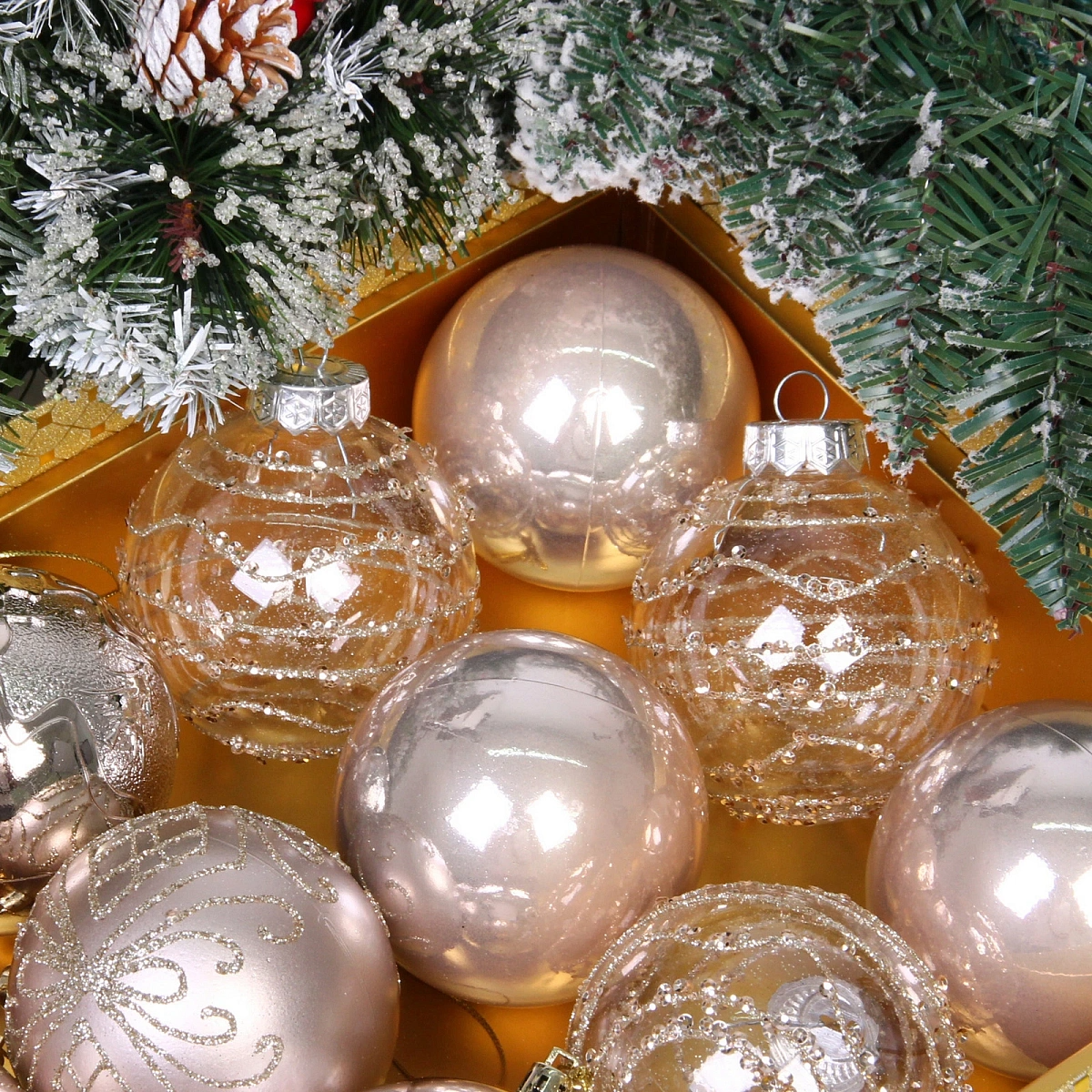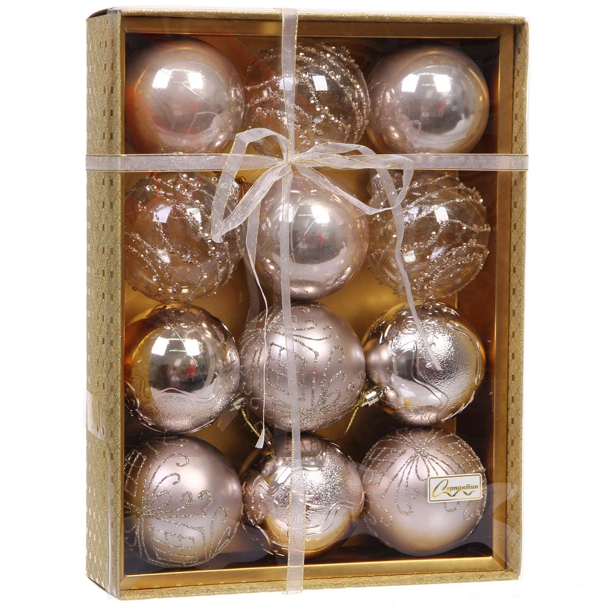 Новогодние шары "Волшебство ночи" 8 см (набор 12 шт), Шампань