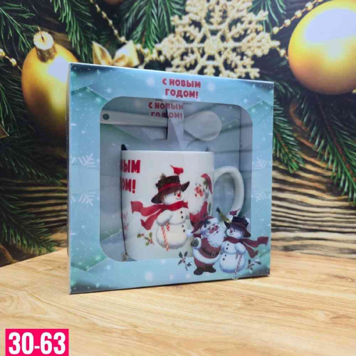 Новогодний подарочный набор кружка с ложкой Материал посуды: фарфор размер упаковки: 8х14х14см Объем кружки: 200 мл