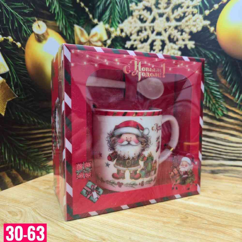 Новогодний подарочный набор кружка с ложкой Материал посуды: фарфор размер упаковки: 8х14х14см Объем кружки: 200 мл