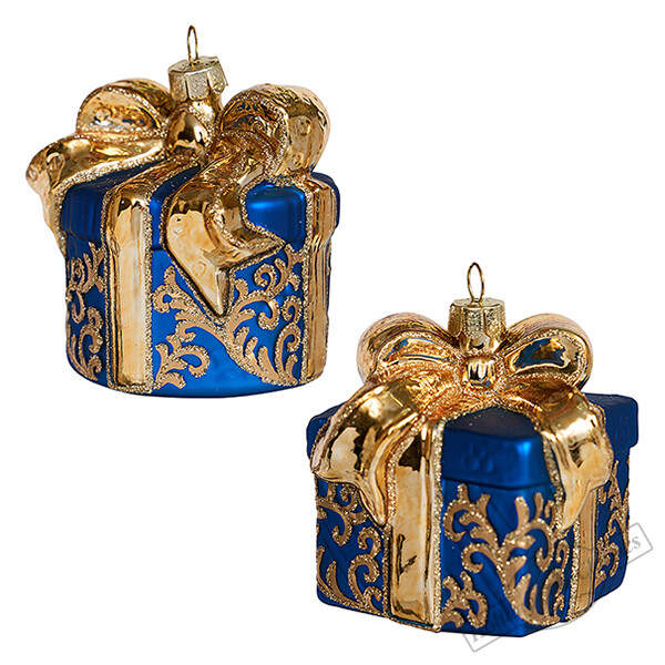 Новогодний подарок сине-золотой, асс. из 2-х (стекло) 7х7х7,5 см