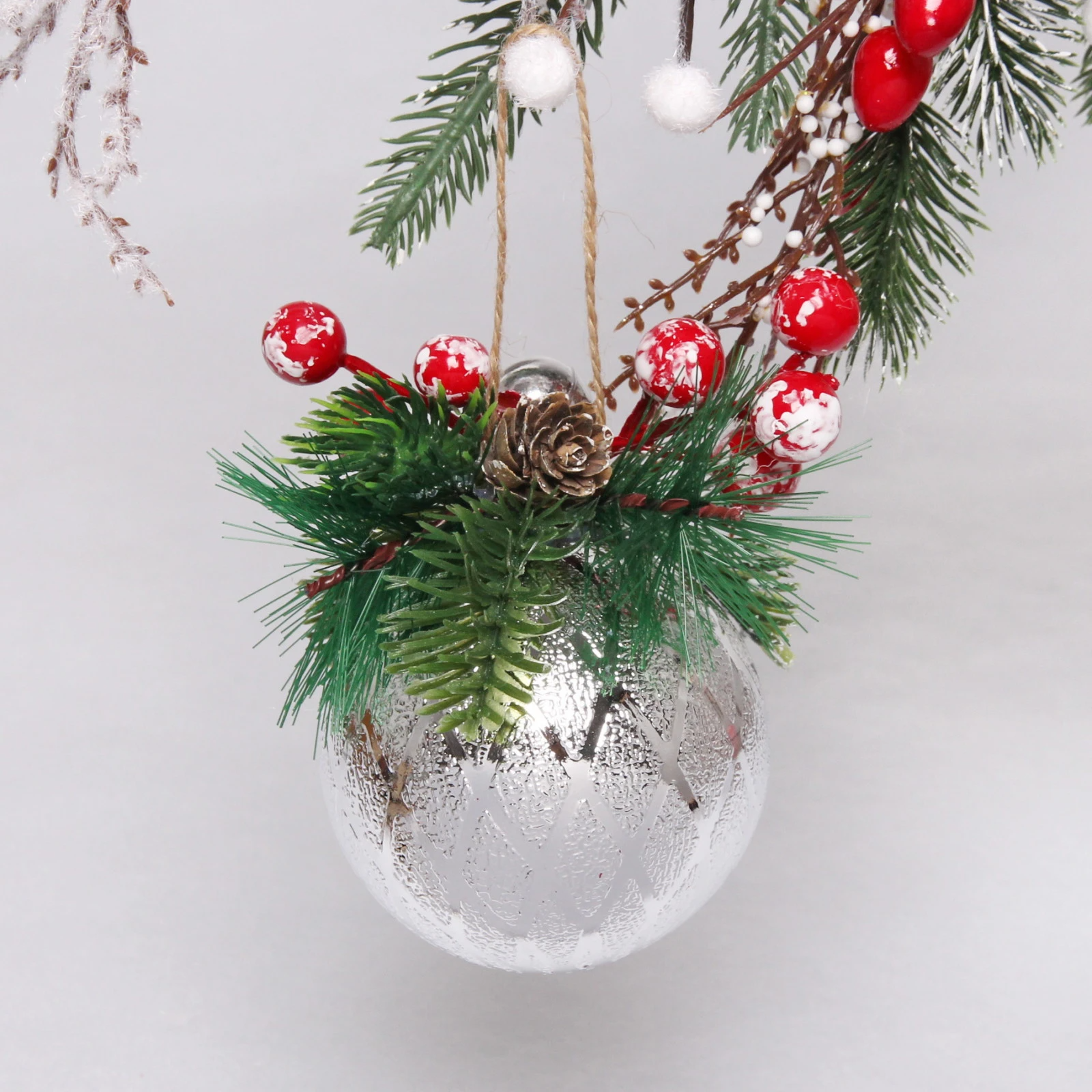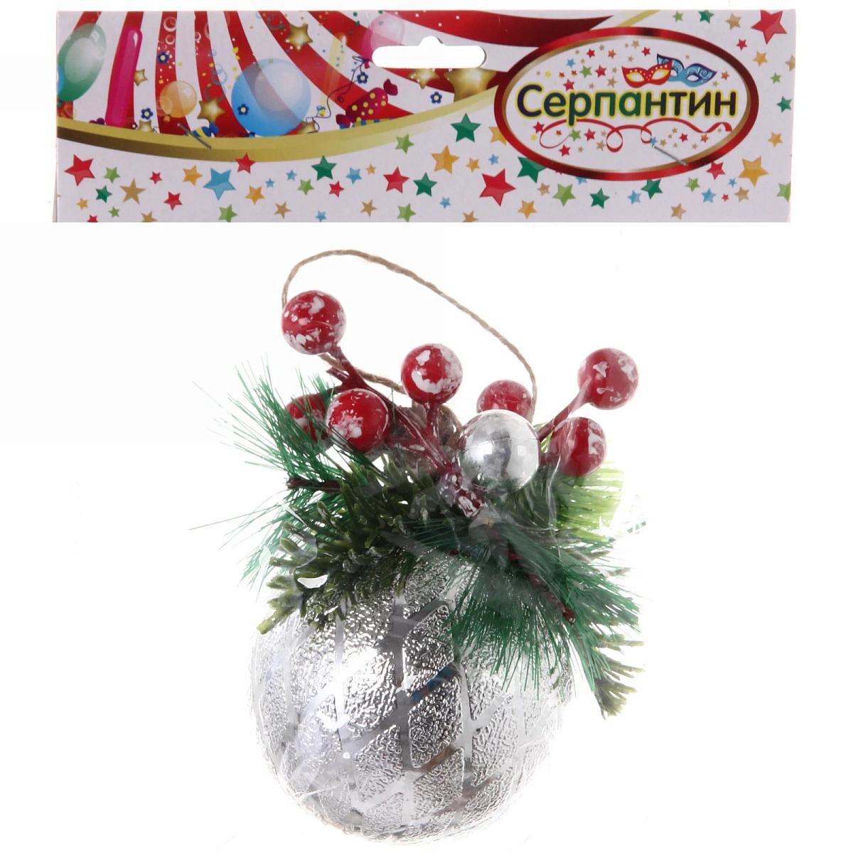 Новогодний шар "Лесная сказка" 8 см, Серебро
